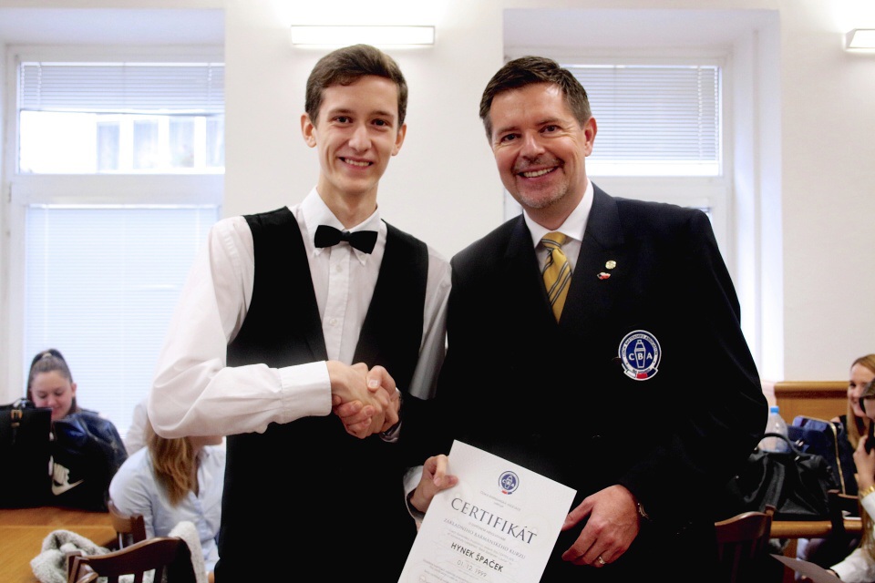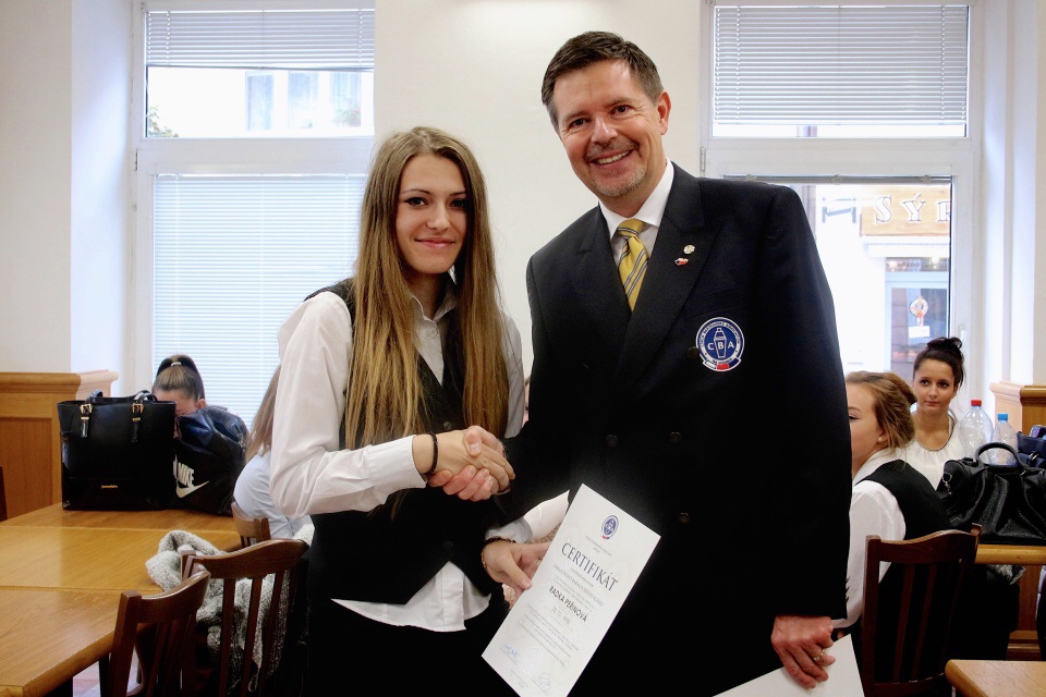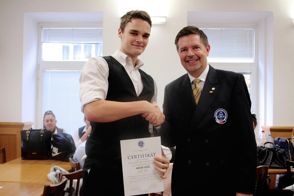 Pátý den nás čekala teoretická a praktická zkouška. Test z probrané teorie jsme všichni zvládli na jedničku. Pak přišla praktická zkouška, tam už sice u některých zapracovaly nervy, ale i tak se s ní všichni poprali. Po obědě nezbývalo už nic jiného než rozdat certifikáty o splnění základního barmanského kurzu, které nám rozdala paní Eva Keclíková a pan Martin Smolný.