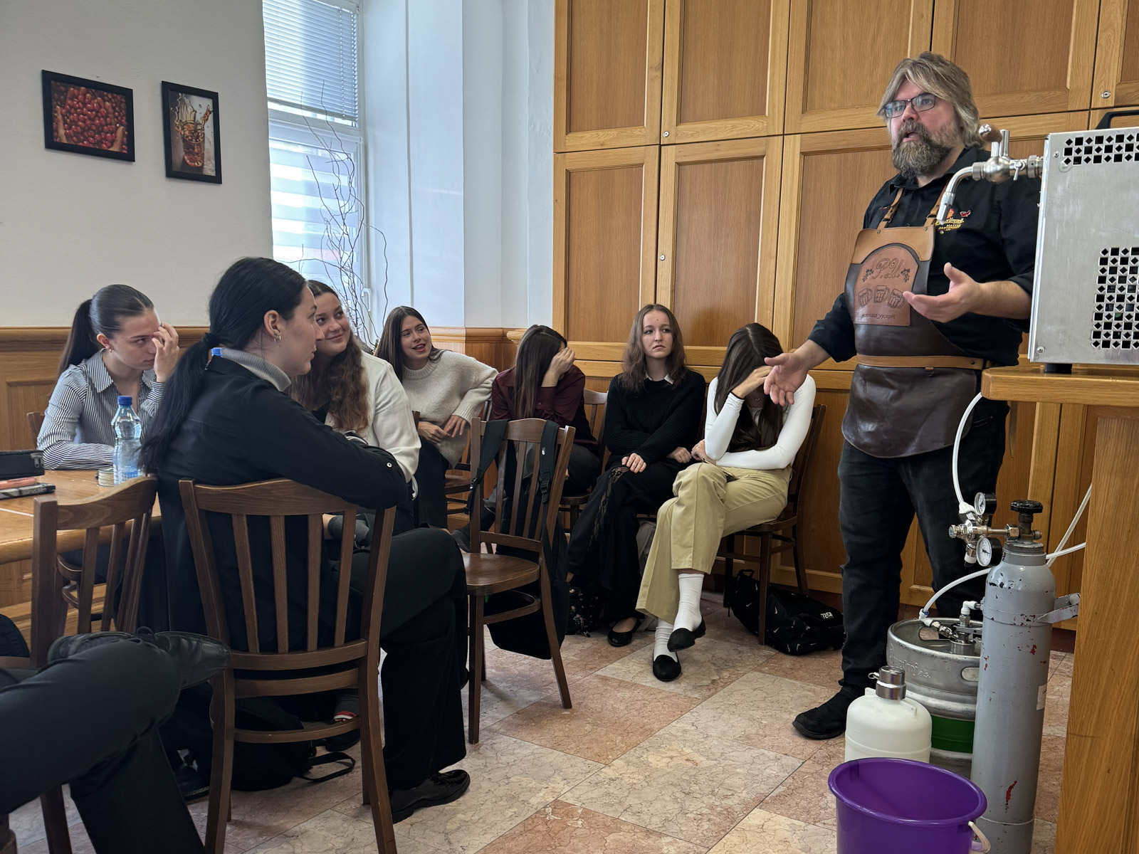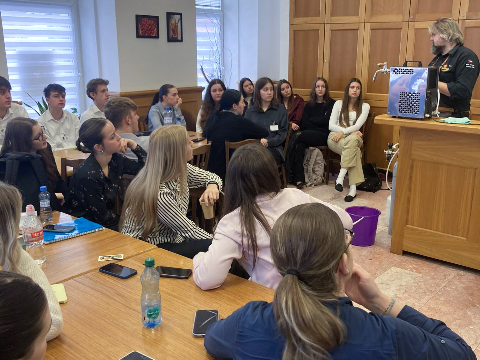 Dozvěděli jsme se mnoho informací o našem zlatém moku. Celou přednášku panovala přátelská atmosféra, protože lektoři se nám snažili zábavnou formou předat co nejvíce informací jak k teorii, tak i k praxi.