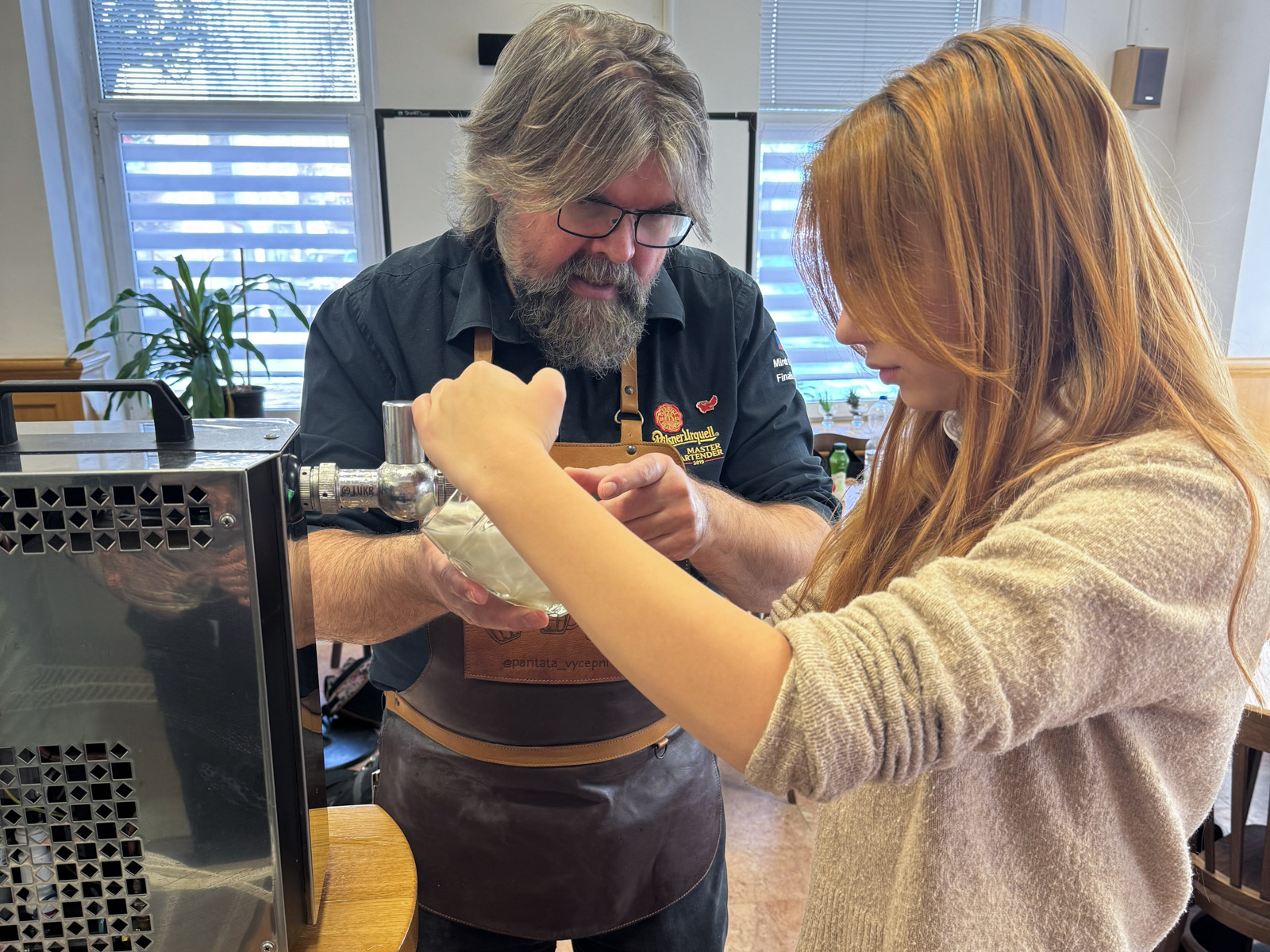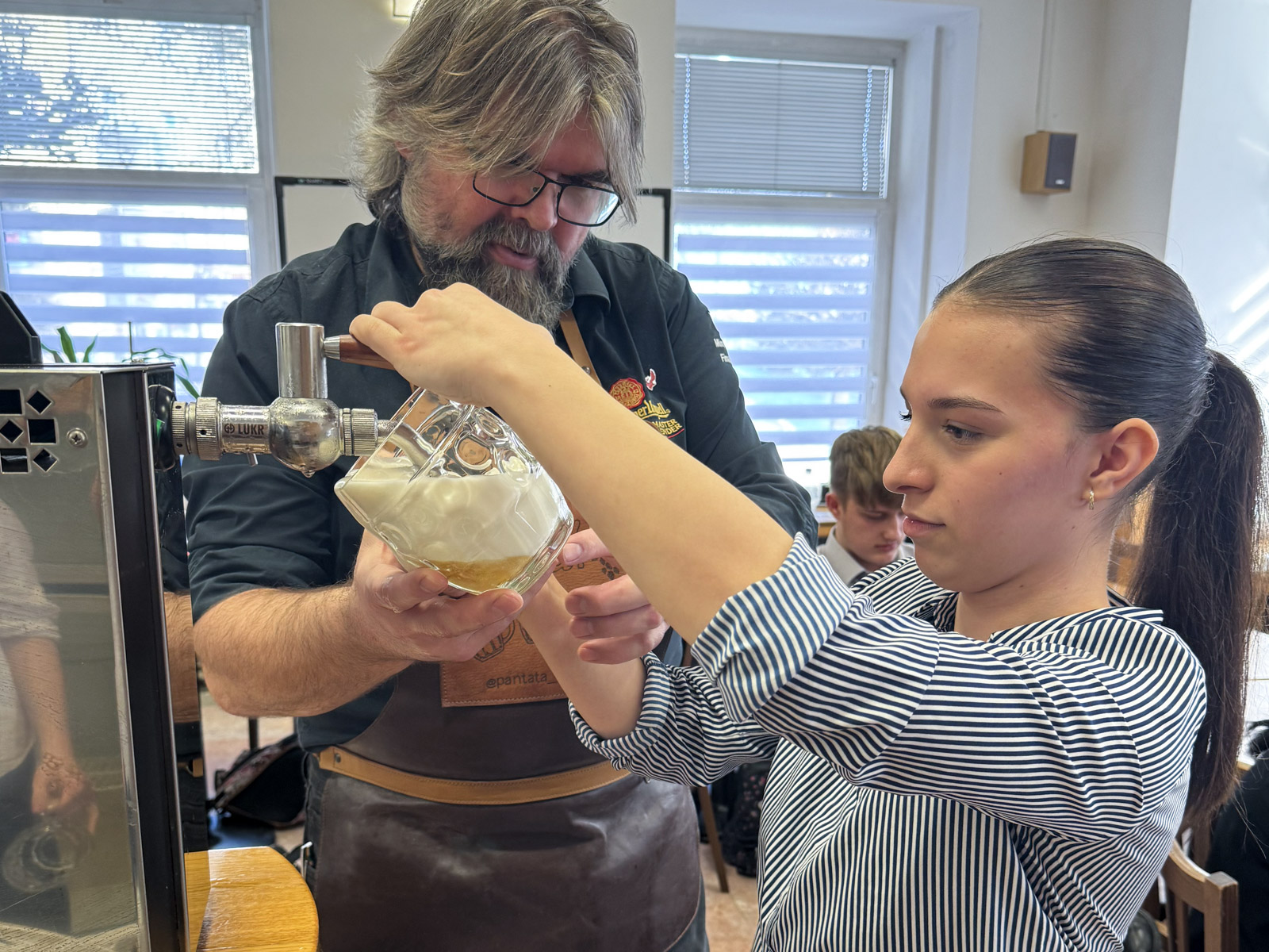 Interaktivní přednášku vedl obchodní sládek firmy Pilsner Urquell pan Zděněk Kalčík [@sladcivakci] a jeden z nejlepších výčepních v ČR pan Mirek Nekolný [@pantata_vycepni], který pracuje v Restauraci Červený Jelen [cervenyjelen.cz].