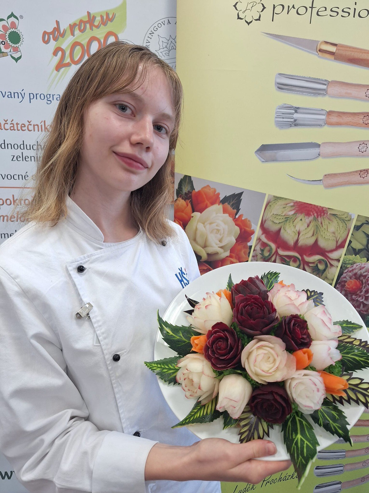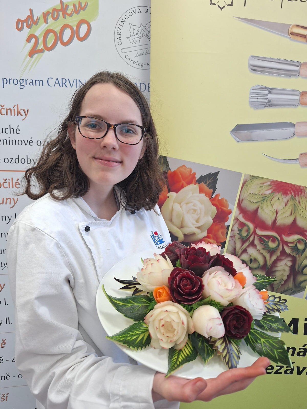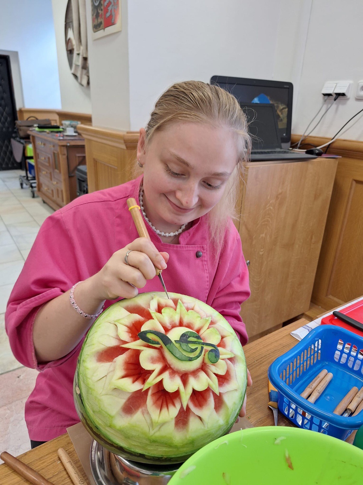 Ve dnech 29. a 30. května 2025 jsme se společně se dvěma spolužačkami zúčastnily pokračovacího kurzu carvingu, tedy uměleckého vyřezávání do ovoce a zeleniny. Kurz vedl pan Procházka, který nás už v minulosti provedl základy této techniky.