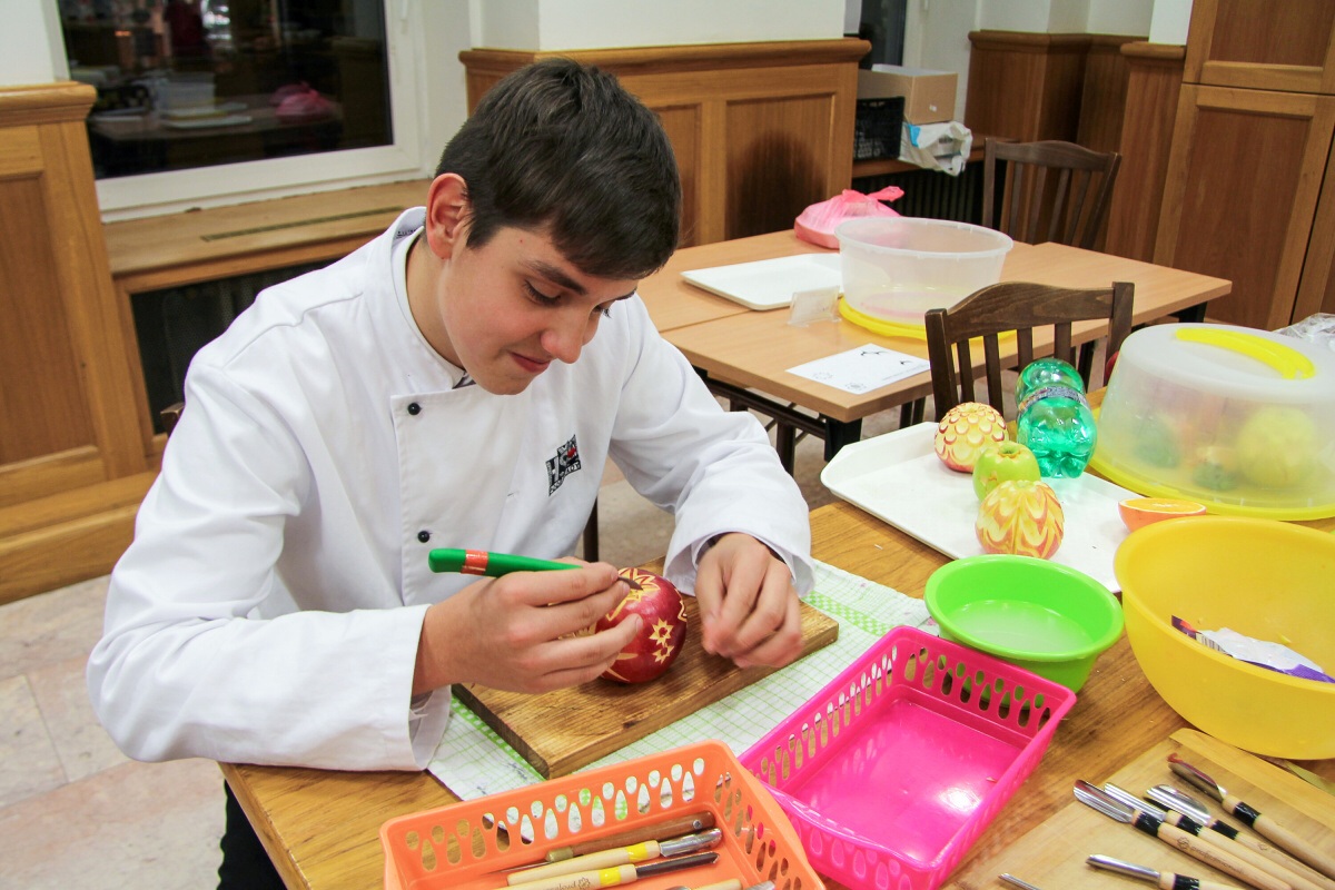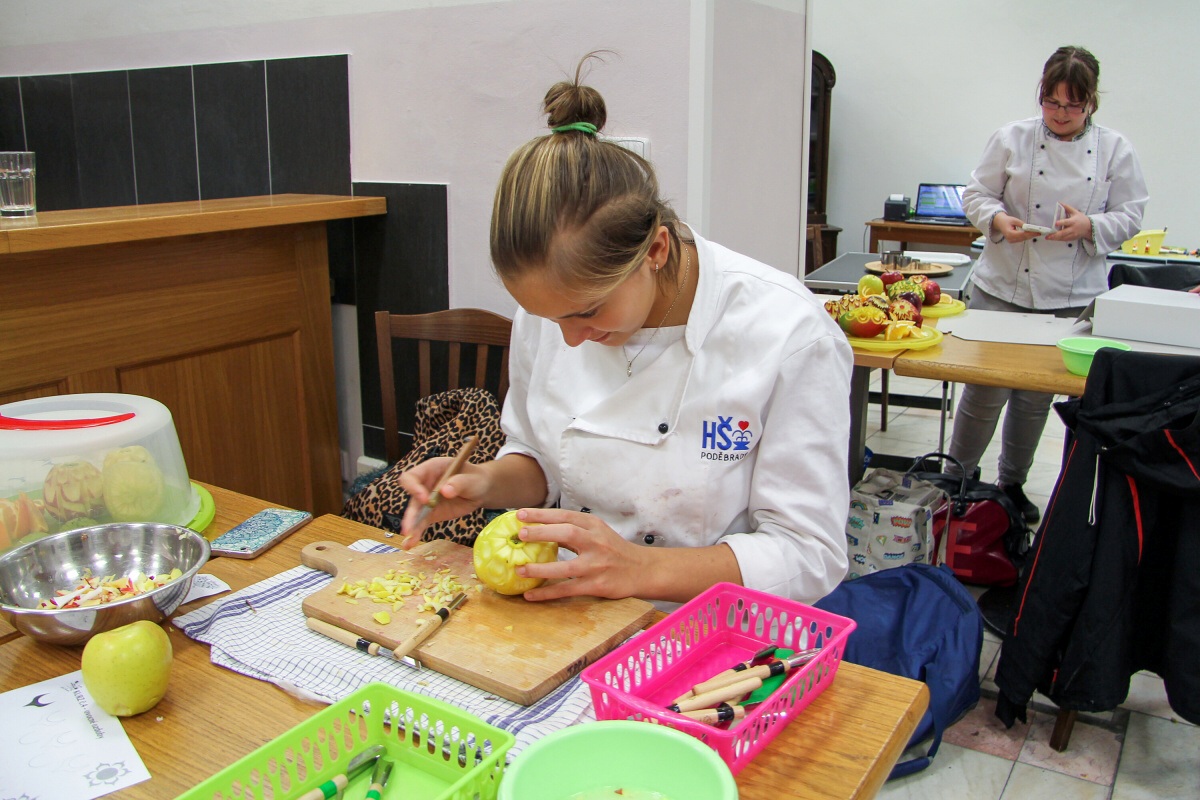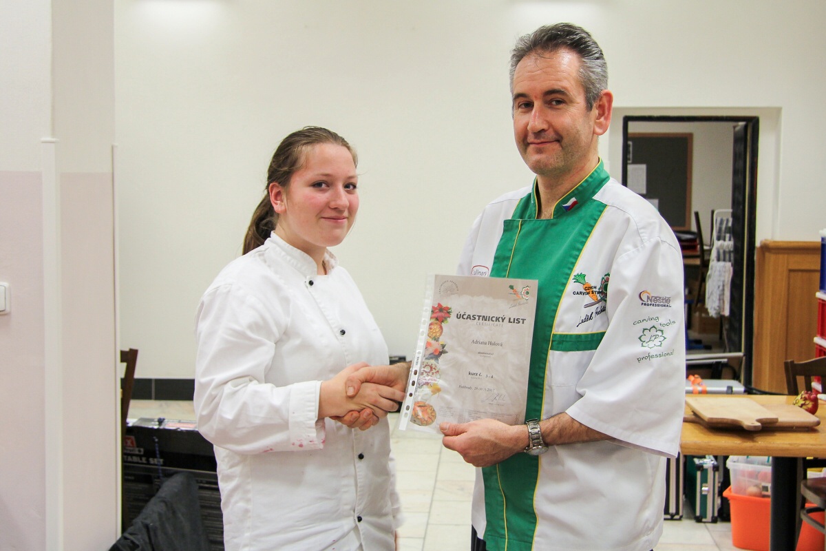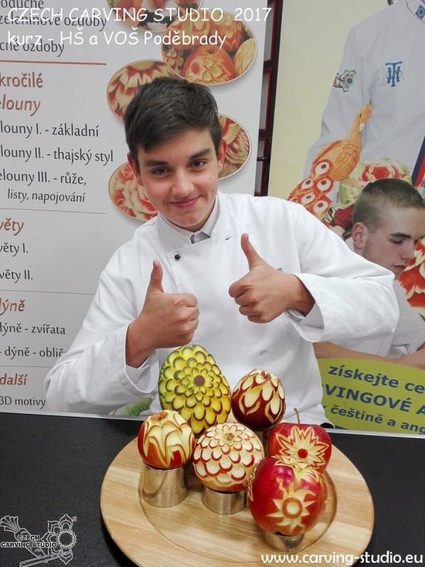 Dne 29.11.2017 se na naší Hotelové škole v Poděbradech konal kurz vyřezávání zeleniny a ovoce neboli carvingu. Kurz vedl pan Luděk Procházka, který v tomto oboru patří mezi mistry.