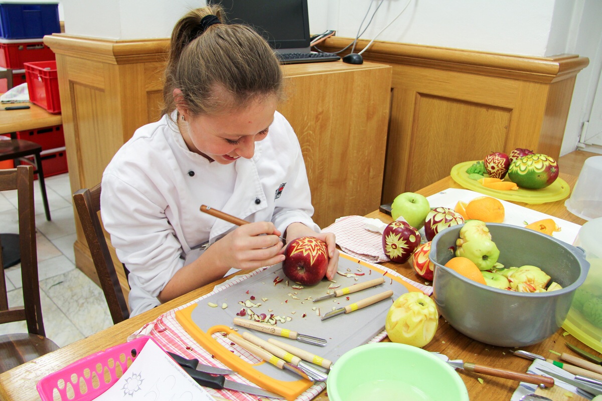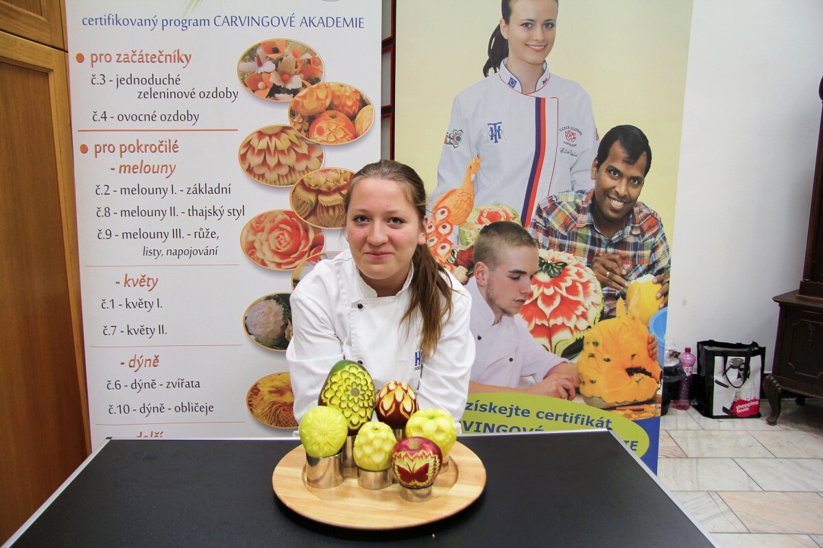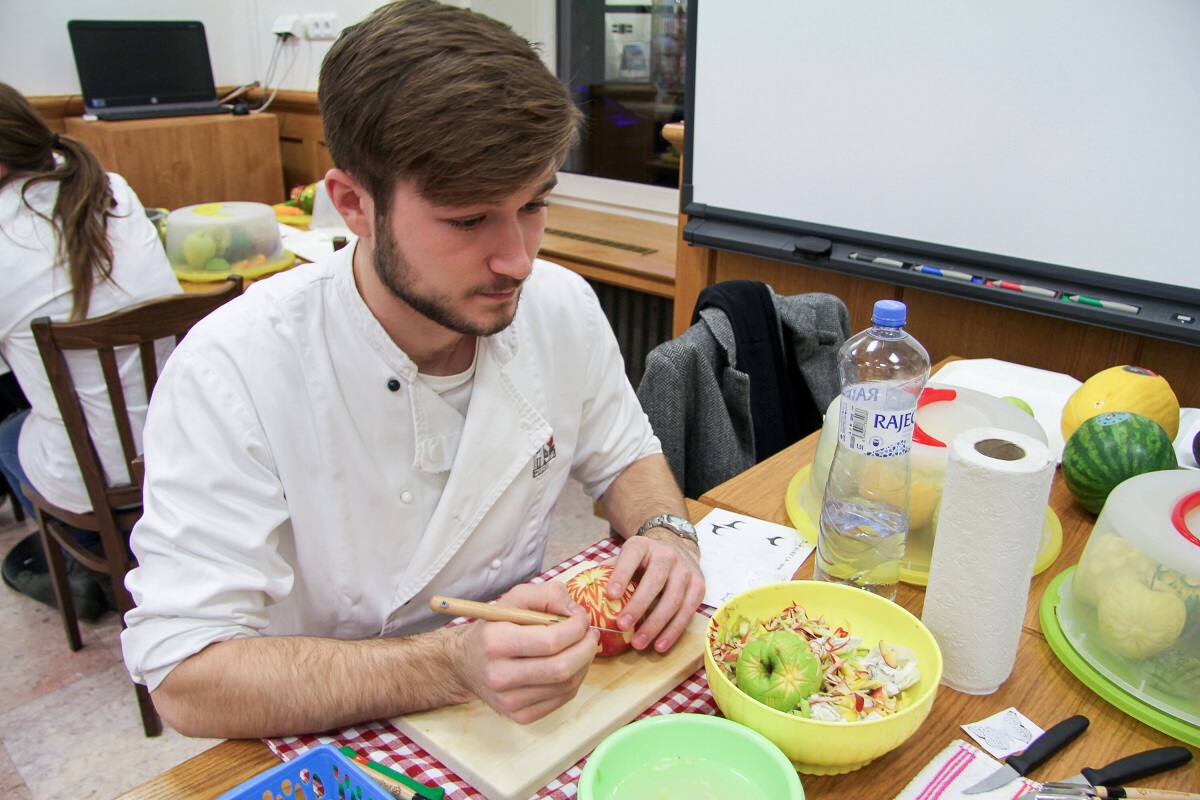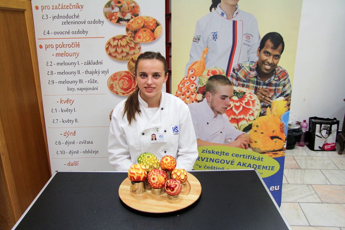 Dne 29.11.2017 se na naší Hotelové škole v Poděbradech konal kurz vyřezávání zeleniny a ovoce neboli carvingu. Kurz vedl pan Luděk Procházka, který v tomto oboru patří mezi mistry.