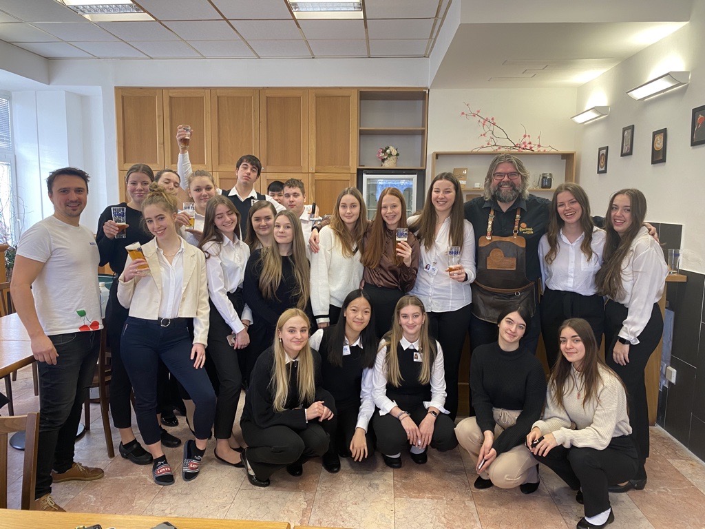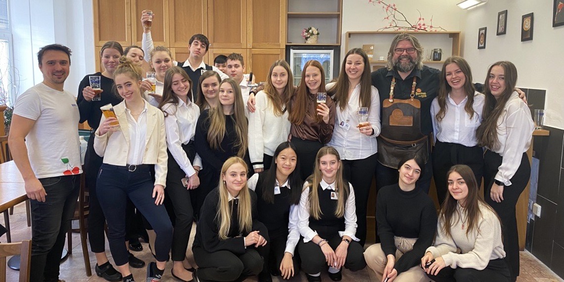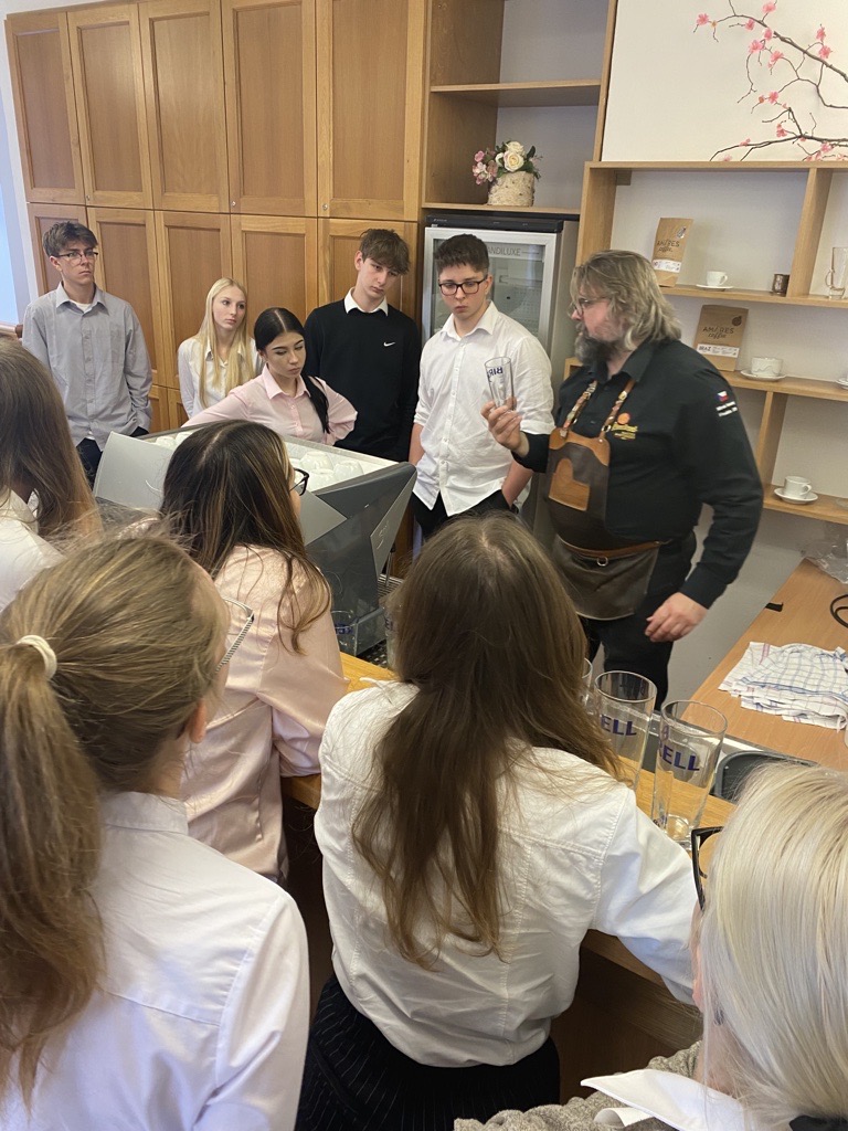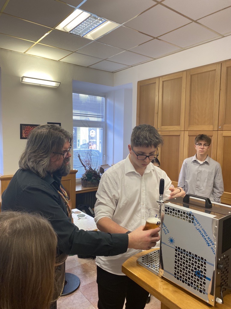 Ve dnech 16. a 17. ledna 2023 naší školou vonělo pivo. Navštívili nás pánové Zdeněk Kalčík, obchodní sládek plzeňského Prazdroje a Miroslav Nekolný, hlavní výčepní z restaurace Červený jelen v Praze. Připravili si pro studenty druhého ročníku celodenní program o výrobě a čepování piva.