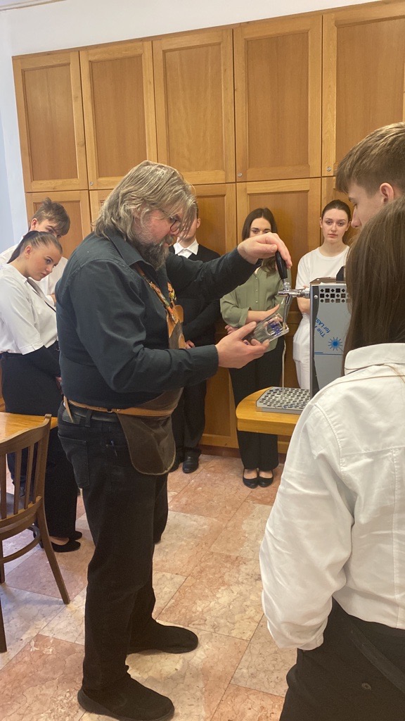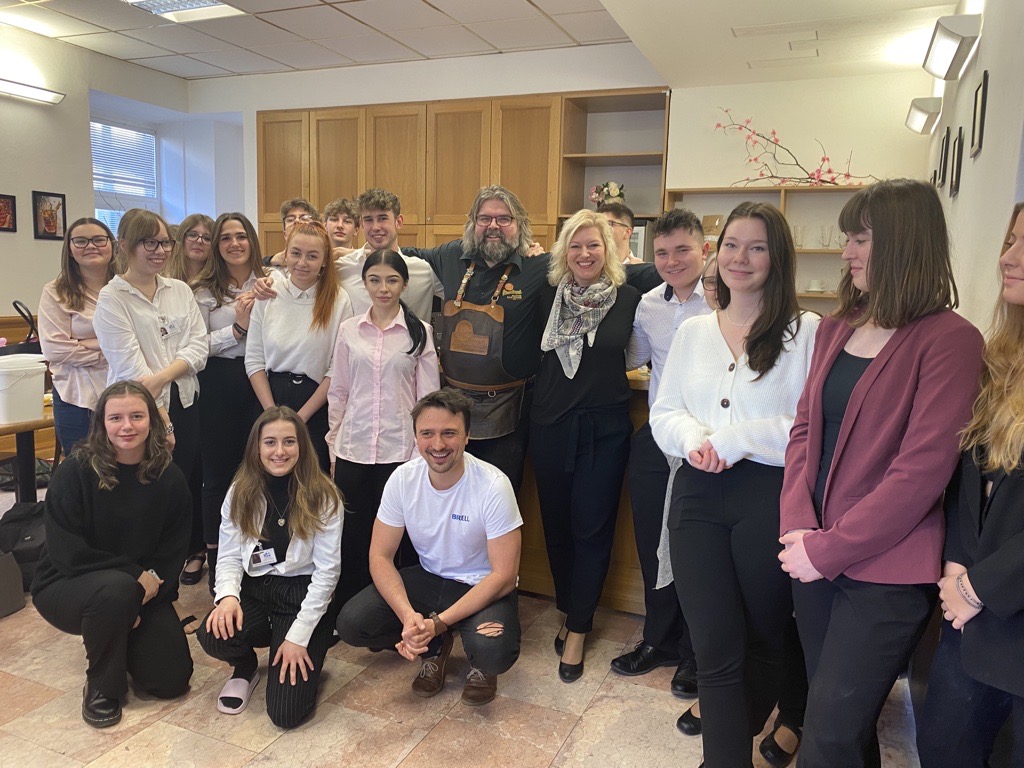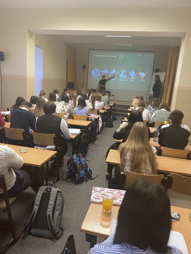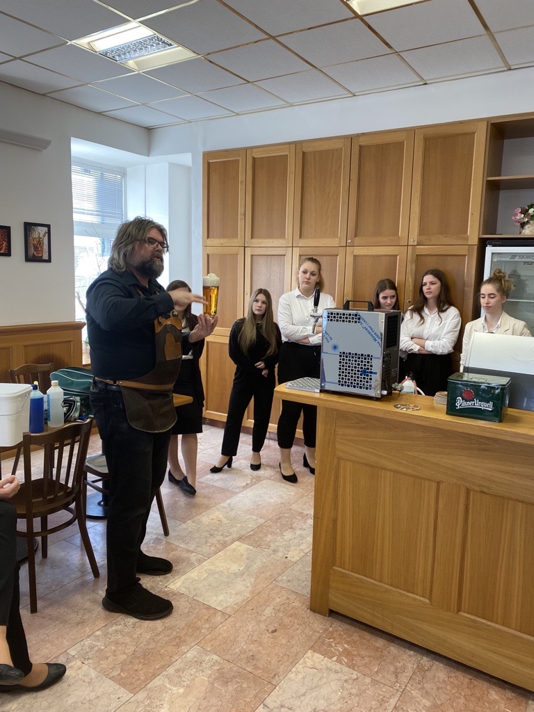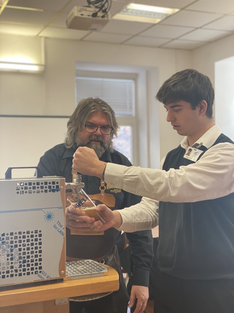 Ve dnech 16. a 17. ledna 2023 naší školou vonělo pivo. Navštívili nás pánové Zdeněk Kalčík, obchodní sládek plzeňského Prazdroje a Miroslav Nekolný, hlavní výčepní z restaurace Červený jelen v Praze. Připravili si pro studenty druhého ročníku celodenní program o výrobě a čepování piva.