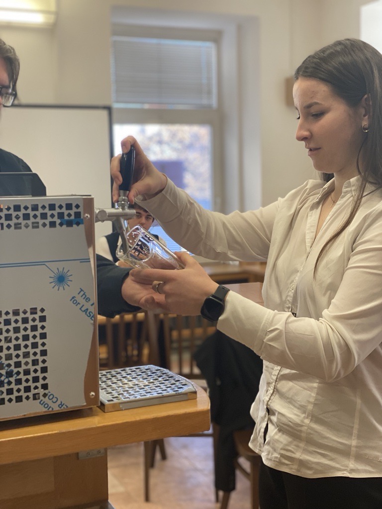 Ve druhé části přednášky nás čekal praktický workshop správného čepování piva. Každý si vyzkoušel mezinárodní styl čepování piva. Neboli “na hladinku”. Naučili jsme se správně a pořádně omýt sklenici a všichni jsme si načepovali to své pivo (samozřejmě nealkoholické:-)).