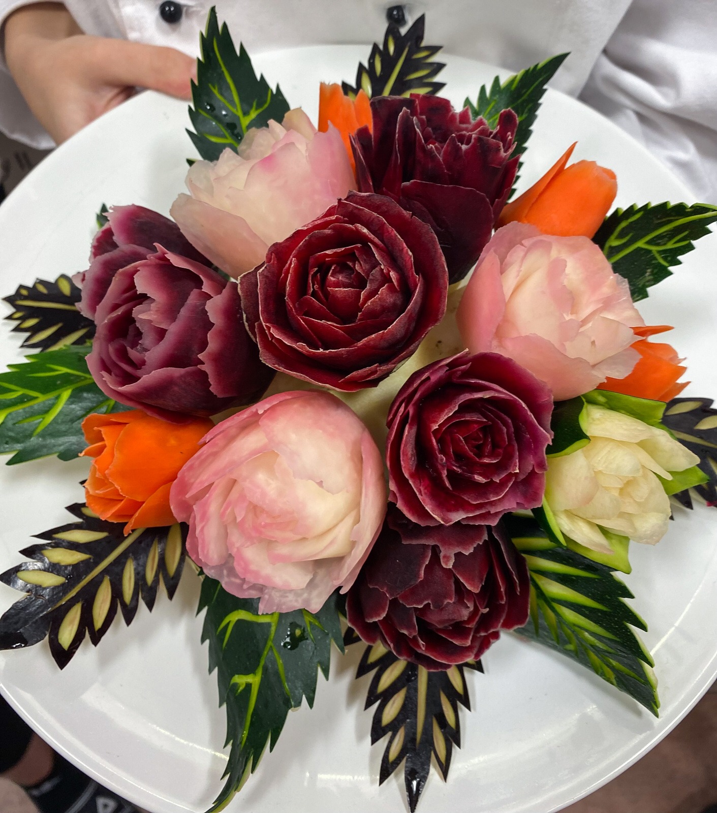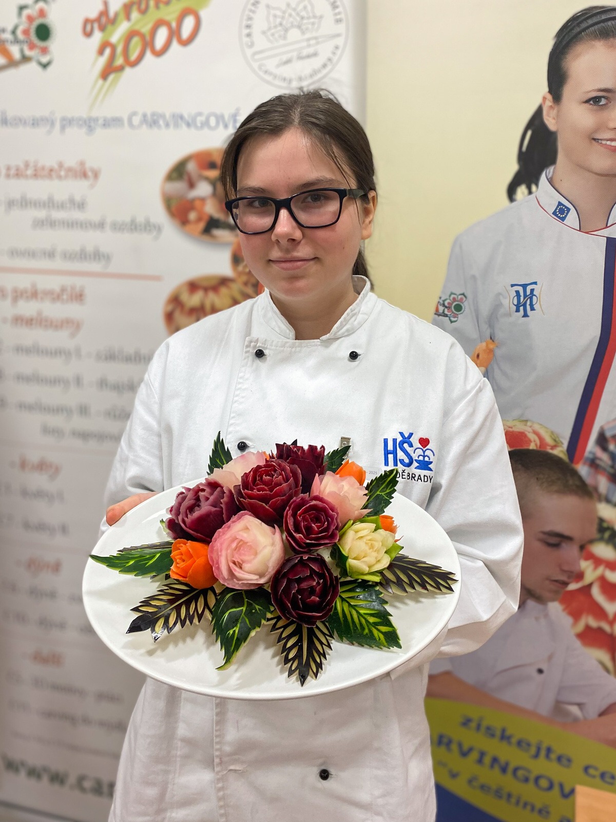 První den jsme řezali do melounů. To byla poměrně odpočinková činnost, jelikož většinu jsme uměli už z prvního kurzu a pouze jsme si opakovali. Také jsme si připravili suroviny na druhý den a namočili je do slané vody, aby nám změkly a lépe se do nich řezalo.