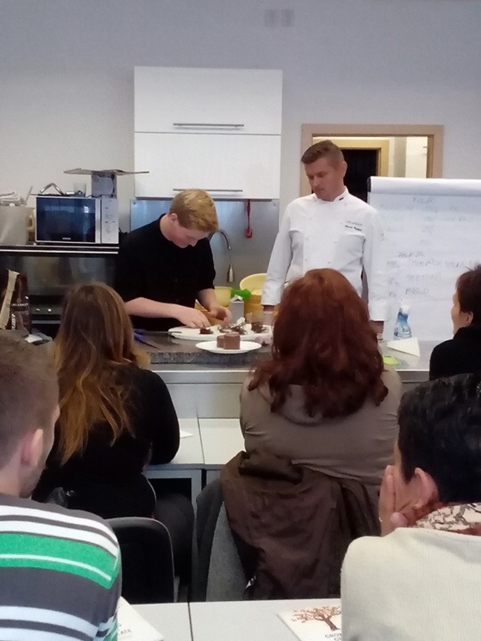 Za účast na soutěži CALLEBAUT CUP 2014 jsme dostali já, Gabriela Jirsáková, a Jakub Pospíšil pozvánku na prezentaci pod vedením technical advisor Marcina Pazdziora na téma Talířové dezerty, minidezerty a lehká vánoční inspirace, která se konala 8. 10. 2014 v Úvalech.