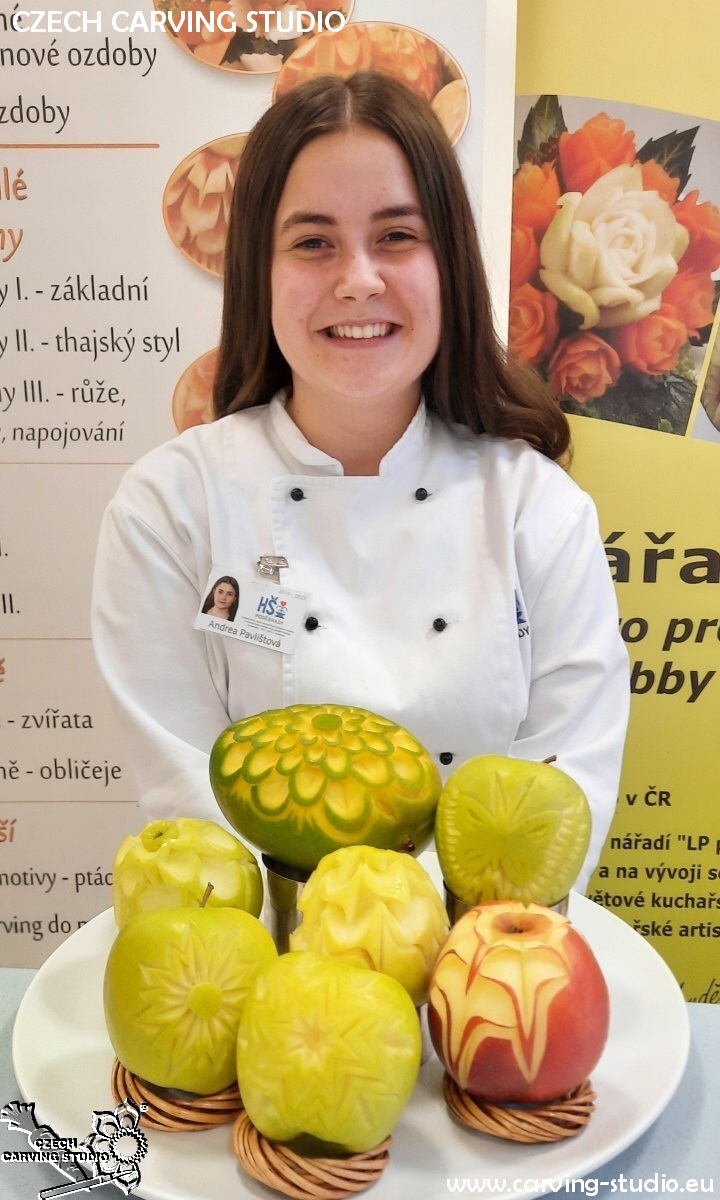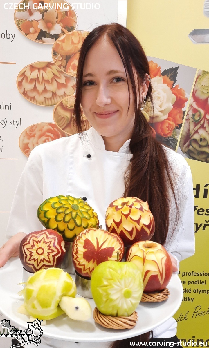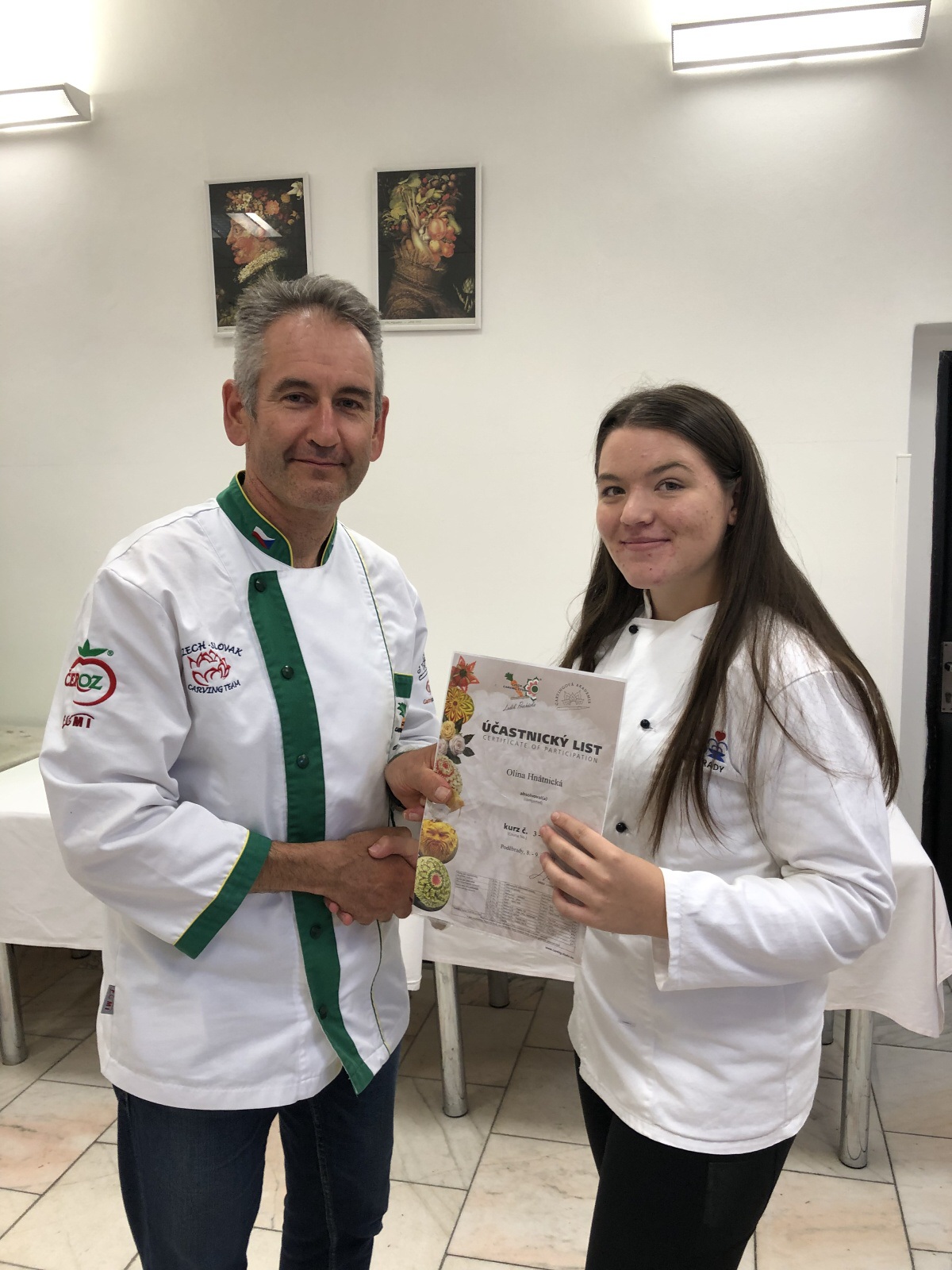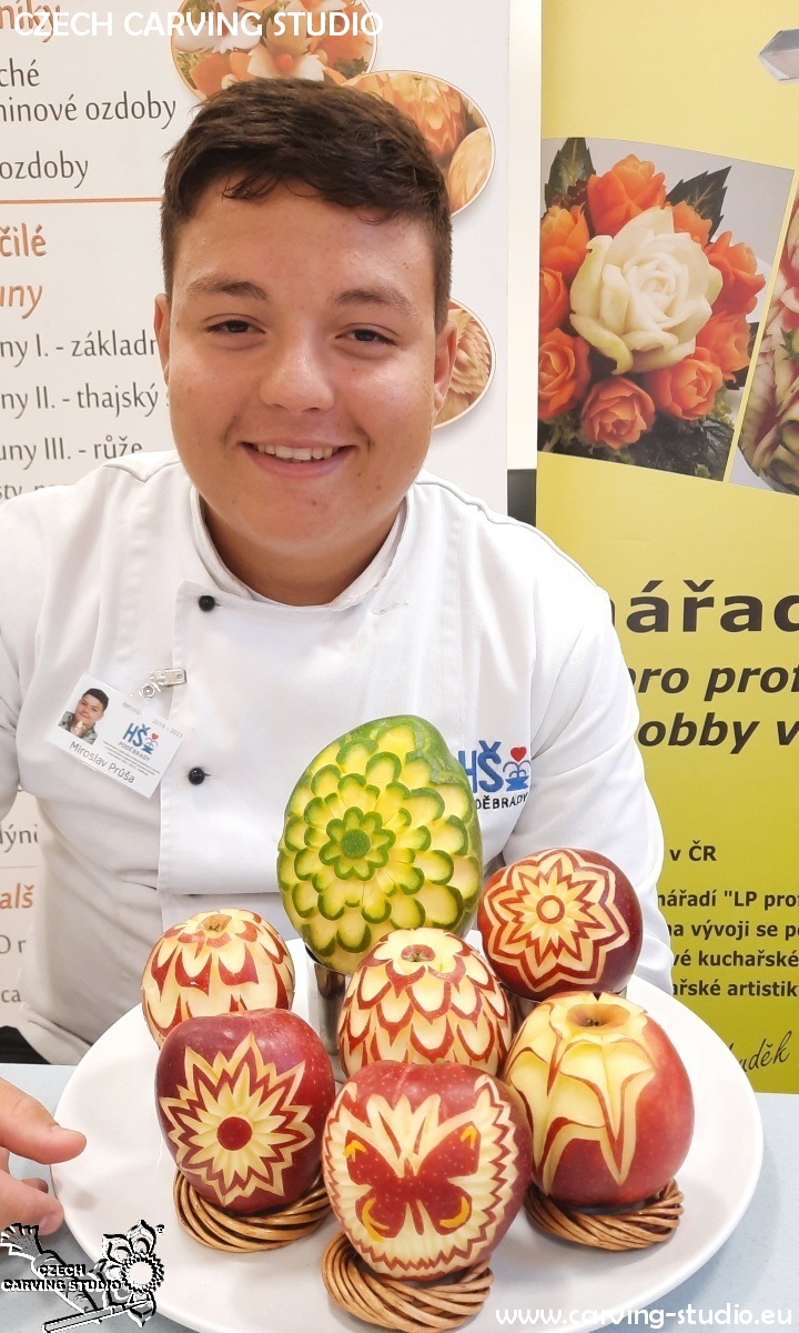 Pan Luděk Procházka nám dopodrobna ukázal, jak se zeleninou a ovocem pracovat, jak z těchto surovin vykouzlit nádherné ozdoby a budit v lidech dotazy typu: „Jak jste to z toho vyřezali?“ a kolikrát to bylo téměř jednoduché a přitom okouzlující.