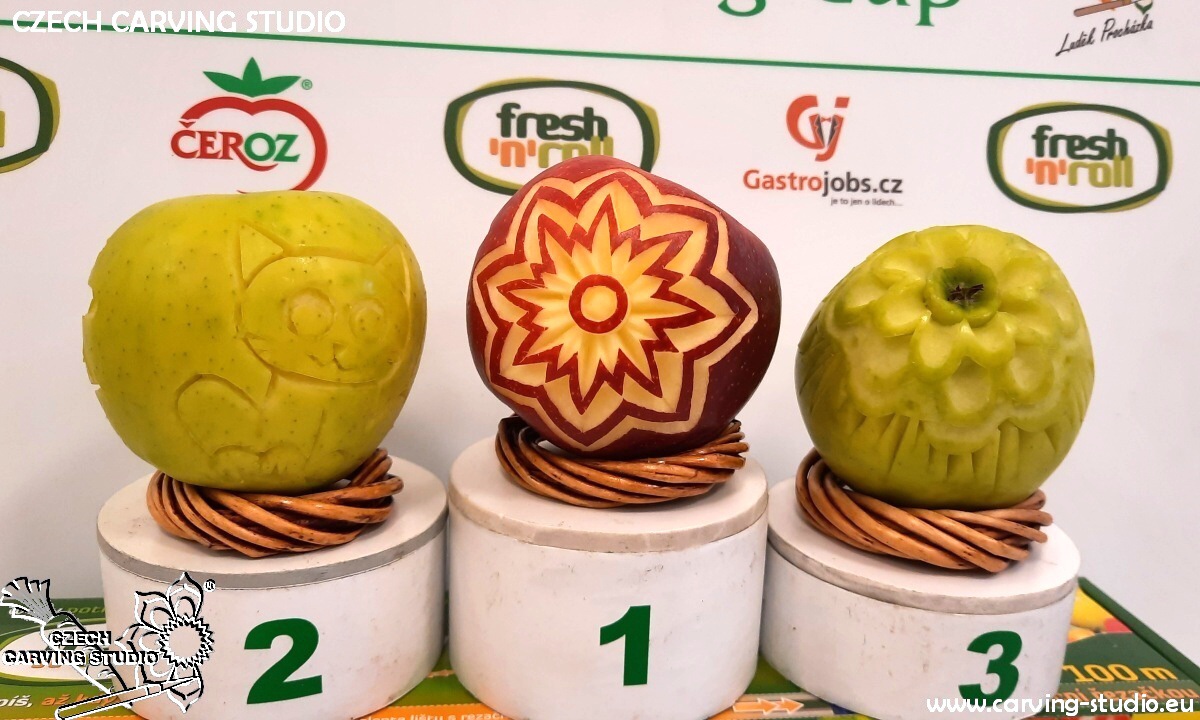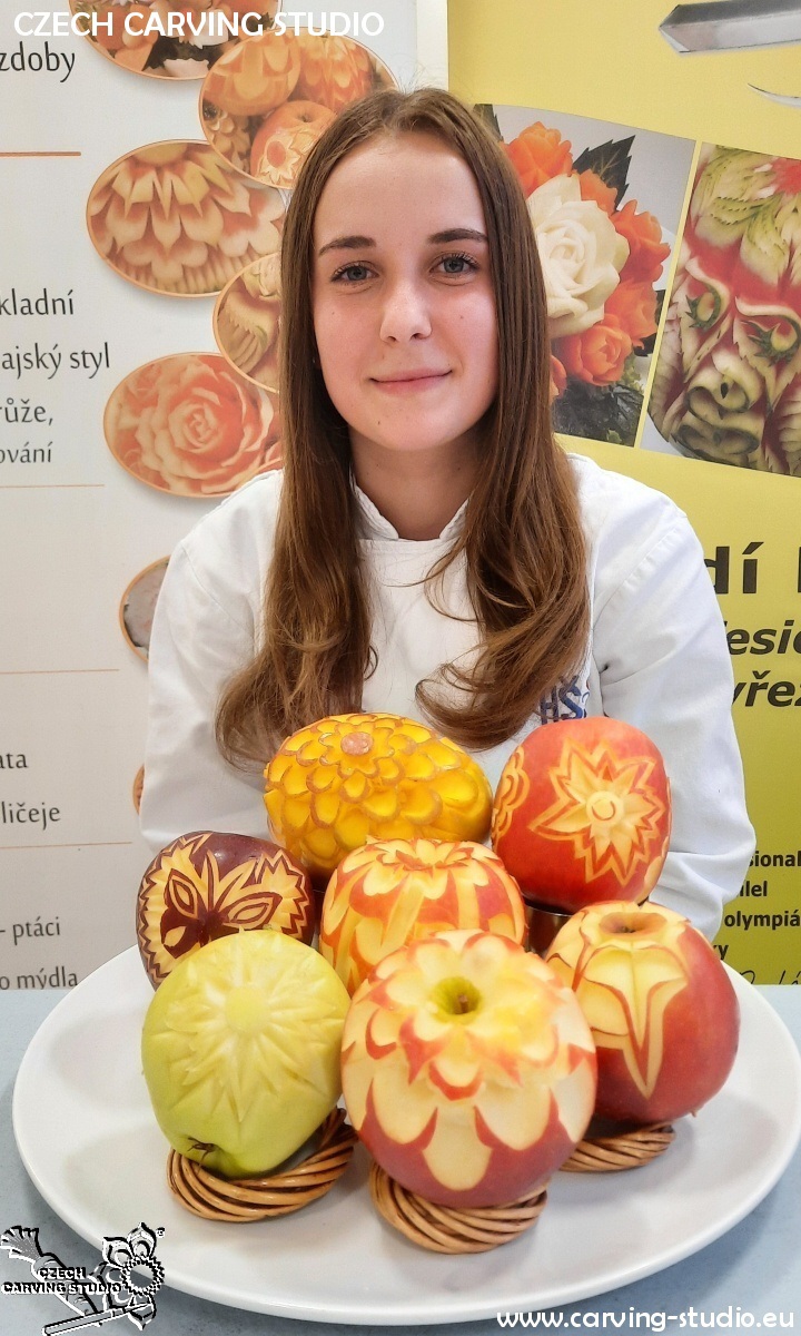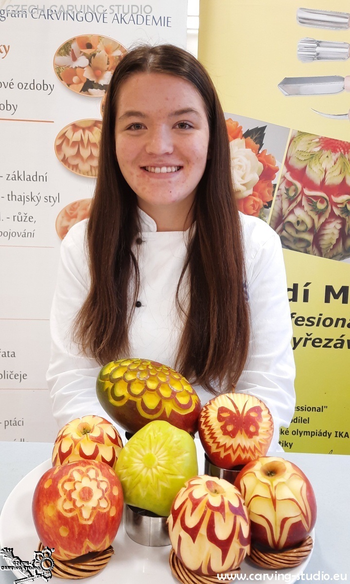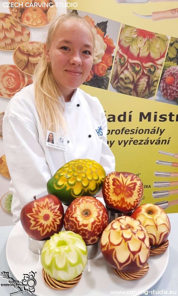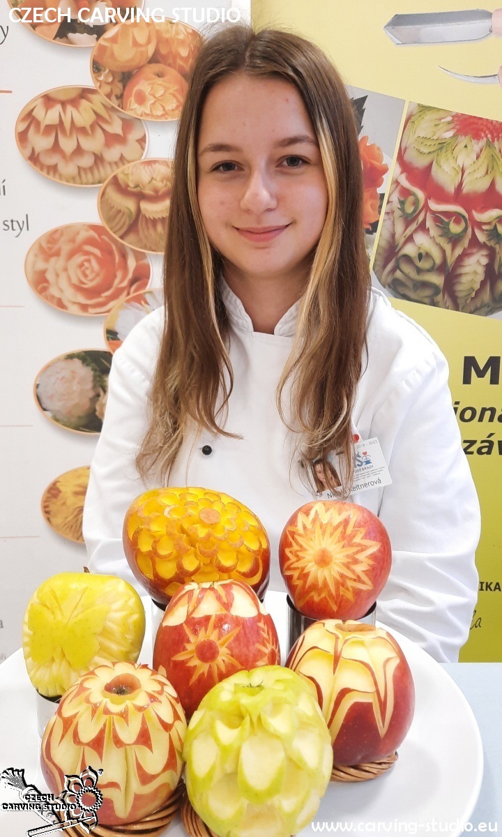 Pan Luděk Procházka nám dopodrobna ukázal, jak se zeleninou a ovocem pracovat, jak z těchto surovin vykouzlit nádherné ozdoby a budit v lidech dotazy typu: „Jak jste to z toho vyřezali?“ a kolikrát to bylo téměř jednoduché a přitom okouzlující.