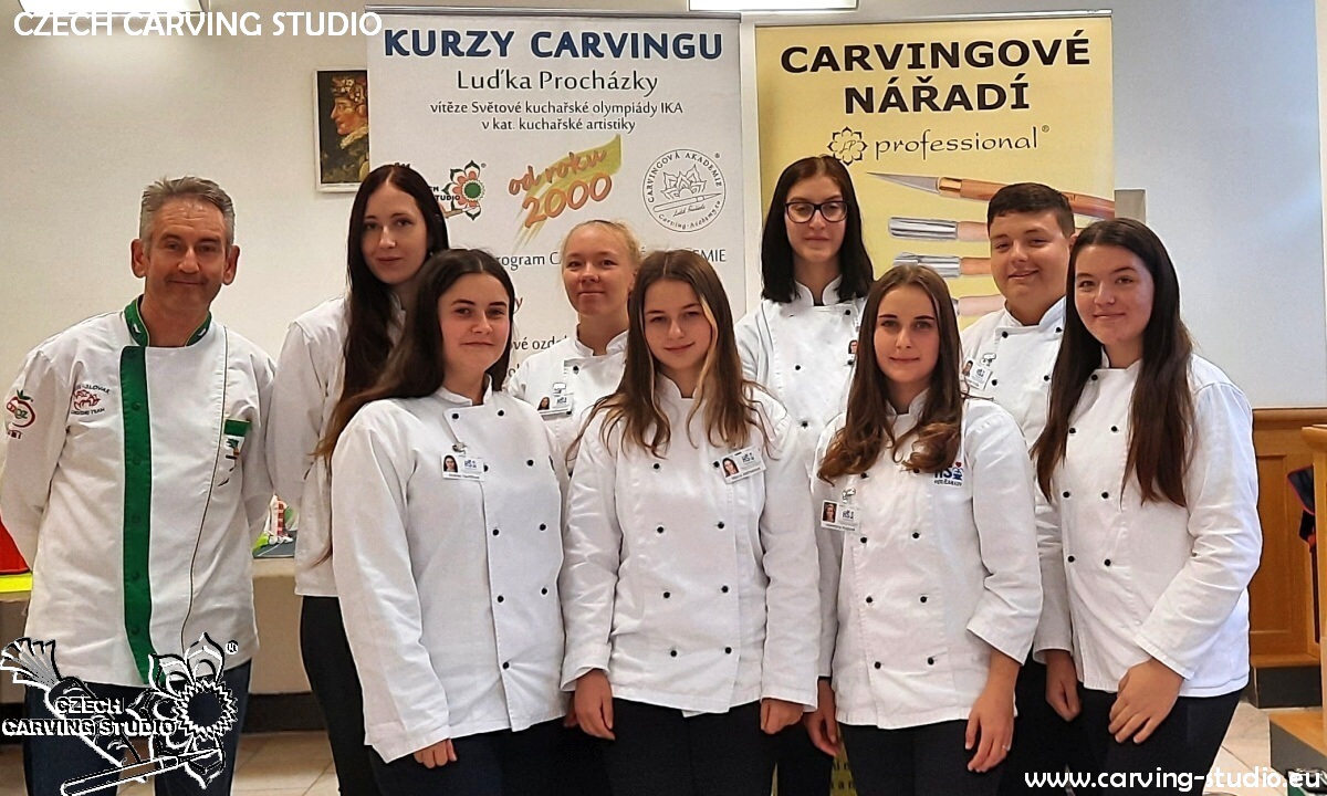 Ve dnech 8. - 9. 9. 2021 se osm studentů z 2., 3. a 4. ročníku zúčastnilo kurzu carvingu pod vedením lektora Luďka Procházky. Pan Procházka je nejen zakladatelem carvingu u nás v Čechách a na Slovensku, ale také skvělým, příjemným a lidsky naladěným učitelem pro začátečníky v tomto oboru.