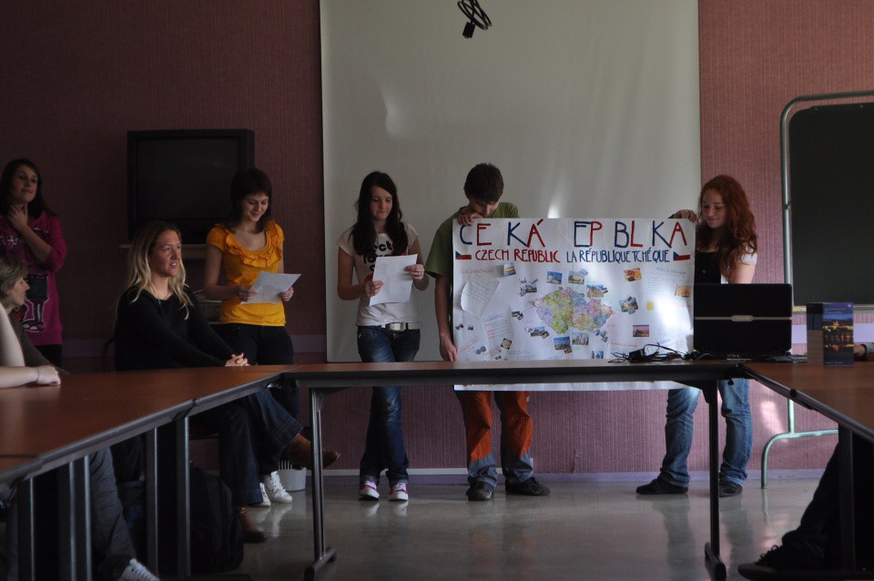 Naše cesta započala v neděli, 21.března, v podvečerních hodinách. Po čtrnáctihodinové jízdě jsme konečně dorazili do cíle – městečka Avallon k budovám Lycee des Chaumes, kde nás již očekávali naši francouzští přátelé. Po zabydlení na místním internátě nadešla chvíle na osobní seznámení, v jehož rámci byla představena naše škola a především celá Česká republika. Následoval vydatný oběd a odpolední procházka do centra Avallonu, kde jsme narazili na první odlišnost od naší země, a to že většina francouzských obchodů má v pondělí zavřeno. Druhý den zahájila návštěva Chateau de Bazoches s anglickým výkladem o historii tohoto zámku. Dalšími zastávkami na naší cestě se stala mestečka Vezelay a následně Auxerre. Středu bych nazvala dnem nákupním. Ne na darmo se říká, že Francie je centrem módy a tak, byť jsme navštívili i místní muzeum, zanechal Dijon nejvetší stopu v našich peněženkách. Ve čtvrtek ráno nás páni řidiči vyvezli do starobylého města Flavigny, které je proslulé tím, že se zde natáčel film Čokoláda. Naše kroky však zamířily do místní výrobny anýzových bonbonů, které si pak samozřejmě většina z nás zakoupila. Zbytek dne uplynul jako voda a najednou tu byl pátek. Tento poslední den jsme zahájili návštěvou vyučování, a tak měli někteří z náš šanci nahlédnout do hodiny angličtiny, jiní španělštiny či francouzštiny. Novinkou pro nás bylo zjištění, že jedna francouzská vyučovací hodina trvá 55 minut.V 10 hodin jsme se všichni sešli v jedné z učeben, kde měla podle slov paní učitelky probíhat jakási „tisková konference“, z které se ale nakonec stala přátelská konverzace proložená zpíváním českých a francouzských písní. Nastal čas oběda a poté to nejhorší – loučení, které pro některé z nás nebylo vůbec jednoduché. I přesto jsme se nakonec všichni opět „naskládali“ do autobusu a vyrazili na cestu zpět k domovu.