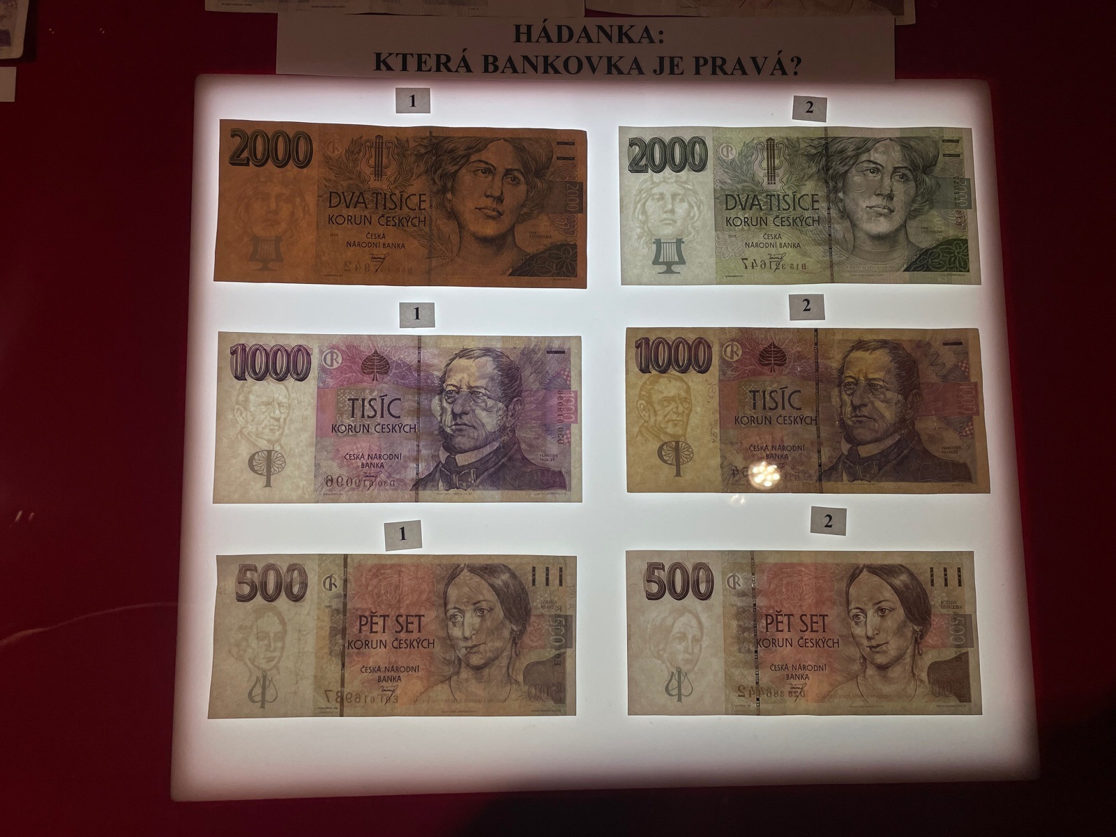 Naše průvodkyně byla velmi milá a vtipná. Kladla nám různé otázky, a pokud jsme na ně odpověděli správně, získali jsme za ně odměnu v podobě záložky, do níž byly vložené skartované peníze.