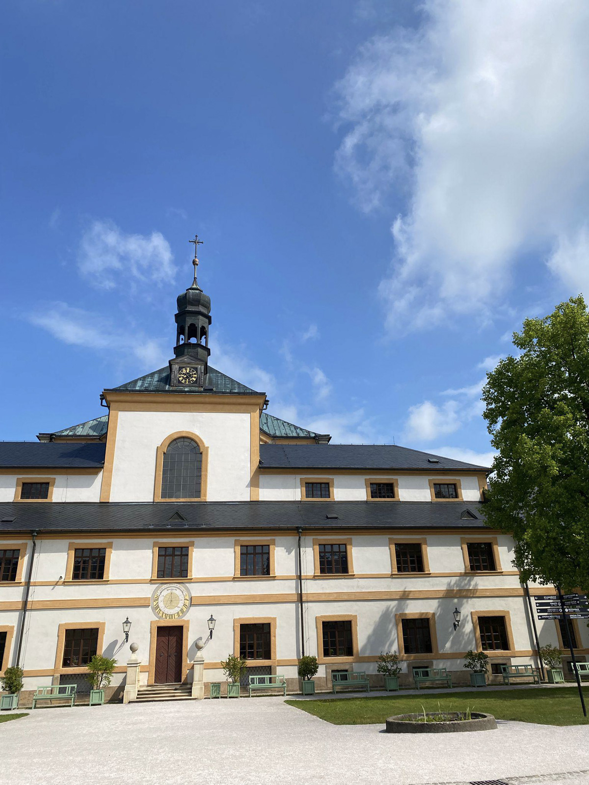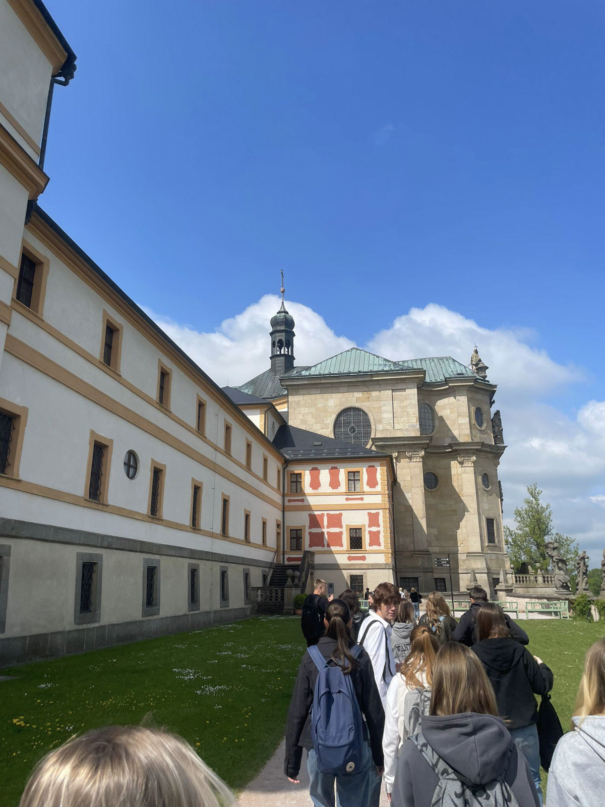 Dne 20. května 2025 jsme se společně s třídami 1.C a 1.D vydali na naučnou exkurzi do areálu hospitalu Kuks. Na místo jsme dorazili s přestupem v Jaroměři kolem půl jedenácté dopoledne.