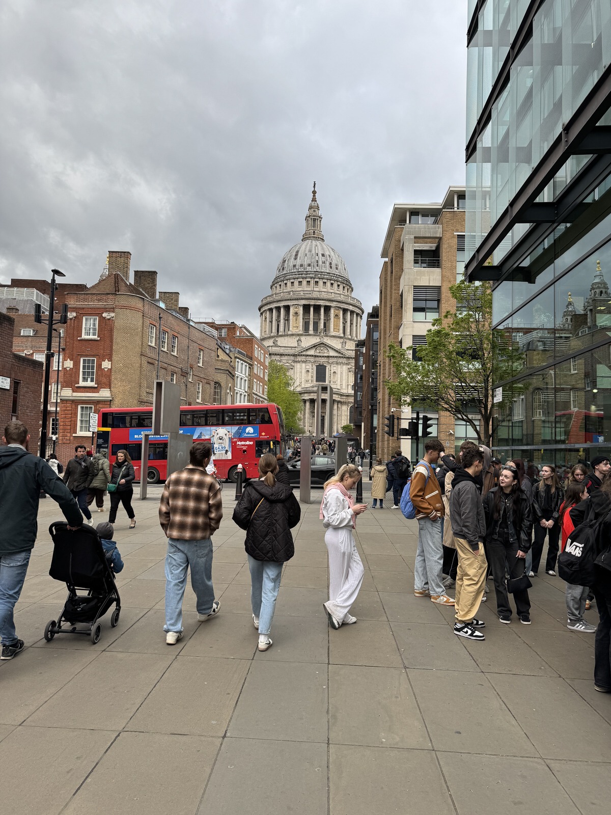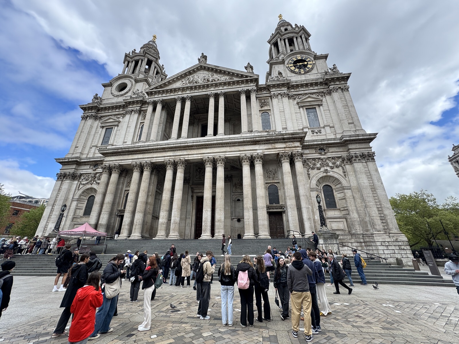 Po příjezdu jsme vystoupili z autobusu u parku ve čtvrti Greenwich, kde se nachází známá královská observatoř a prochází tudy nultý poledník, který jsme společně překročili. Poté jsme se svezli po řece Temži lodí Uber boat, kterou jsme podpluli i Tower Bridge. Prohlédli jsme si hrad Tower, který v historii sloužil jako královský hrad a pevnost a v němž se v současnosti nachází korunovační klenoty. Pokračovali jsme se k památníku velkého požáru Londýna a na Paternoster Square k St. Paul’s Cathedral. Přešli jsme Millennium Bridge a metrem jsme se dostali k našemu autobusu, který nás odvezl do hotelu Ibis budget, nacházející se v západní části Londýna, v blízkosti letiště Heathrow.
