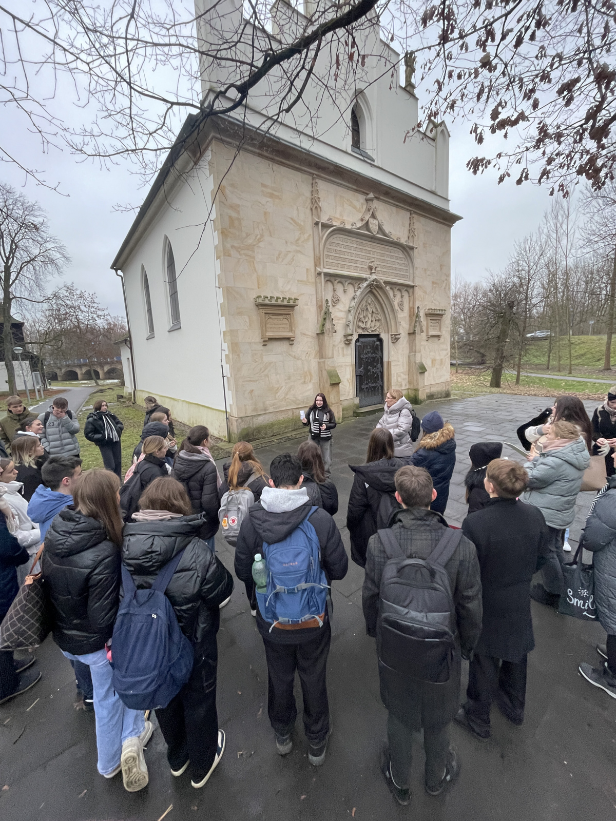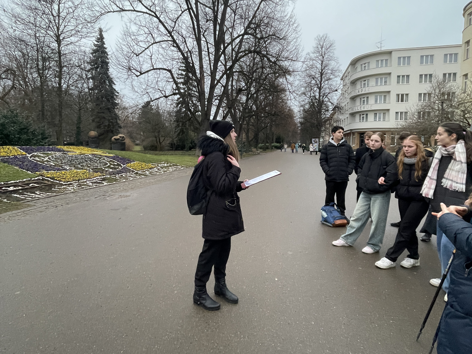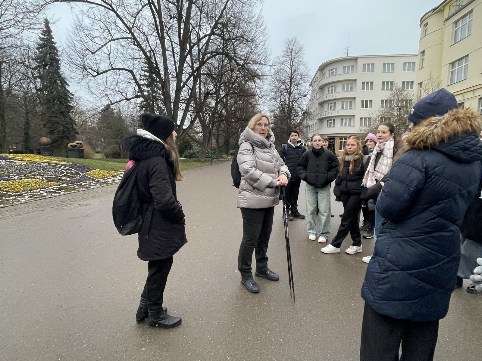Třída 1.D se minulý týden zúčastnila komentované prohlídky Poděbrad, kterou vedli žáci 3.A a 3.B se specializací Tourism Management. Prohlídka začala u školy a dále zahrnovala několik významných míst města.
