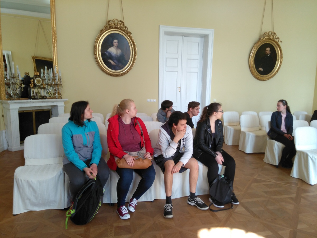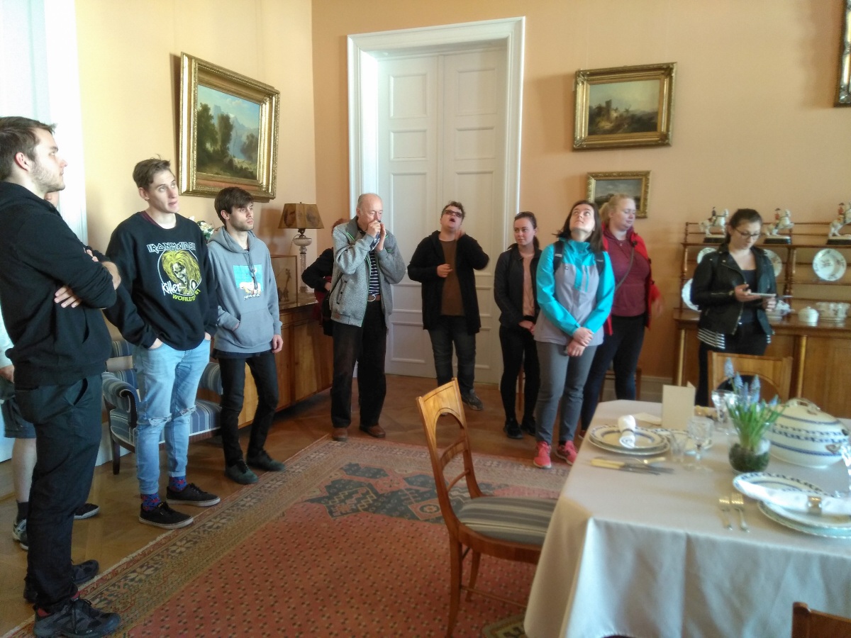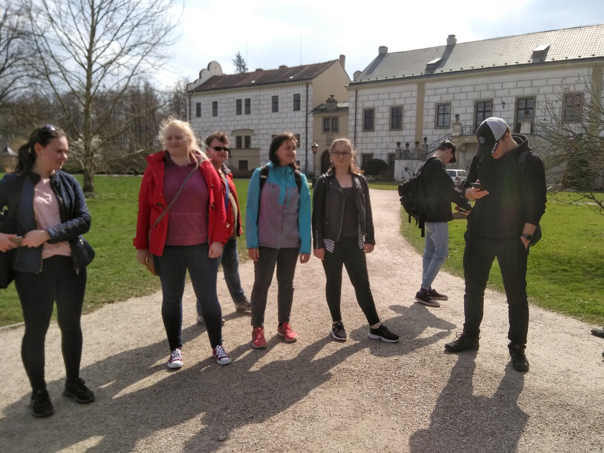 Ve čtvrtek 4. dubna 2019 vyrazili studenti 1. VOŠ na odbornou exkurzi do Kostelce nad Orlicí. Zámkem, jehož majitelem je František Kinský, nás provázel spolužák Michal. A musíme přiznat, že jeho výklad byl excelentní nejen po technické stránce, ale hlavě zajímavý svým obsahem. Poučili jsme se nejen o historii zámku, ale také se dozvěděli hodně z rodokmenu kostelecké větve rodu Kinských, kterou přímo v interiérech dokládaly dobové fotografie, obrazy členů rodu i předměty denní potřeby. Upoutal nás nábytek, čtecí křeslo i s podložkou pro knihu jsme si mohli vyzkoušet, postel s polohovatelným stolečkem bohužel nikoliv.