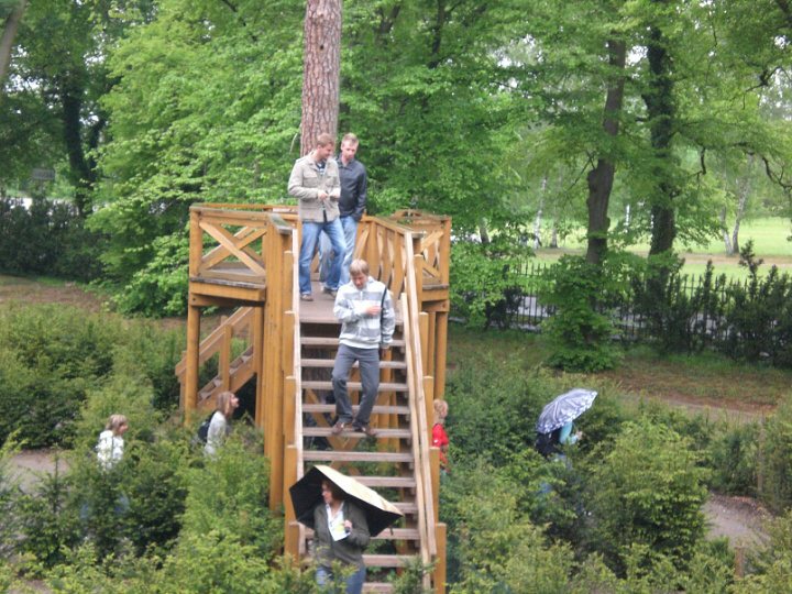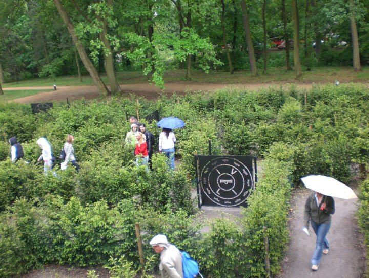 Počasí se postupně umoudřovalo a během her a bloudění v labyrintáriu pršelo jen nepatrně. Deštníky jsme vlastně měli jen jako oděvní doplňky, byť funkci slunečníku pořád plnit nemohly. Takže do jednoho z nejlepších butikových hotelů v Evropě na zámku ve Mcelích jsme v poledne dorazili v turistických outfitech (jak se dnes moderně říká, češtináři prominou) poněkud provlhlých a ne zcela bez poskvrnky. Své by o tom mohla vyprávět jedna z účastnic zájezdu, která si sjela skluzavku v labyrintáriu, že Martino?