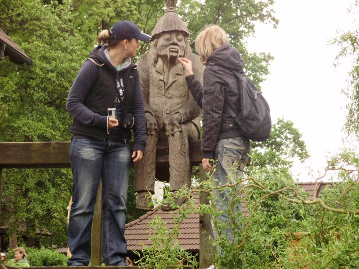 První zastávkou na jejich celodenním putování 6. května byl skanzen v Přerově nad Labem. Vybaveni vědomostmi, které jim cestou předal pan průvodce Jiří Hájek a slečna průvodkyně Tereza Denglerová, procházeli skanzenem a hravě zvládali odpovědi na otázky z testu, jež pro ně připravila zrádná ročníková vedoucí. Raději nebudeme jmenovat. Tak jsme se dozvěděli, kolik pater má sloupkový holubník z Opolánek, které představení zde uvedlo Národní divadlo v roce 1922 či zda je ve skanzenu umožněn bezbariérový přístup a jak je to se vstupem pro naše zvířecí kamarády.