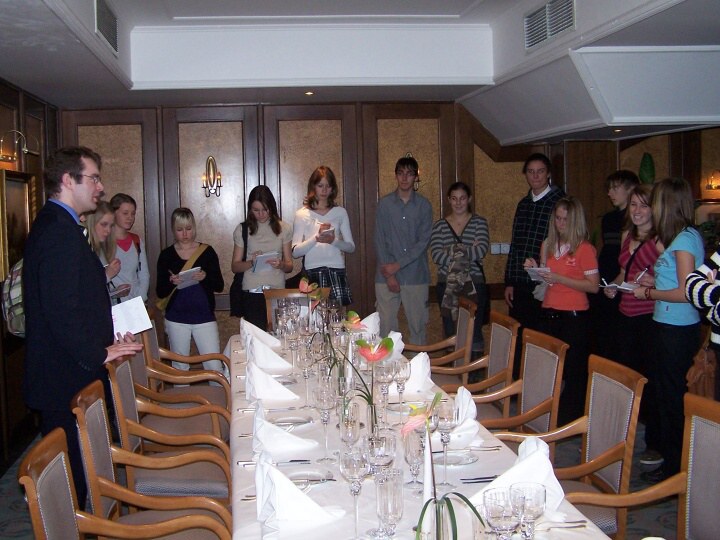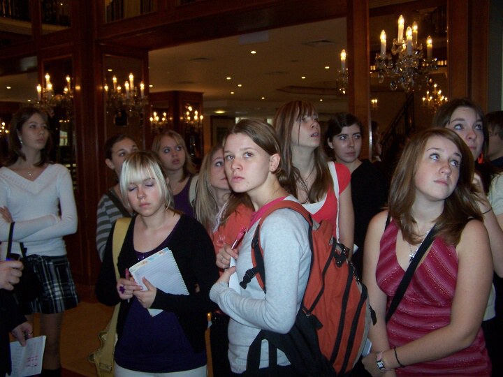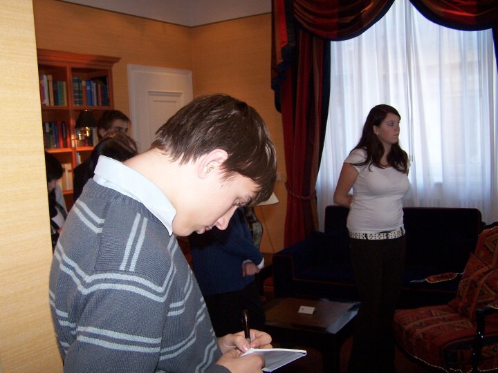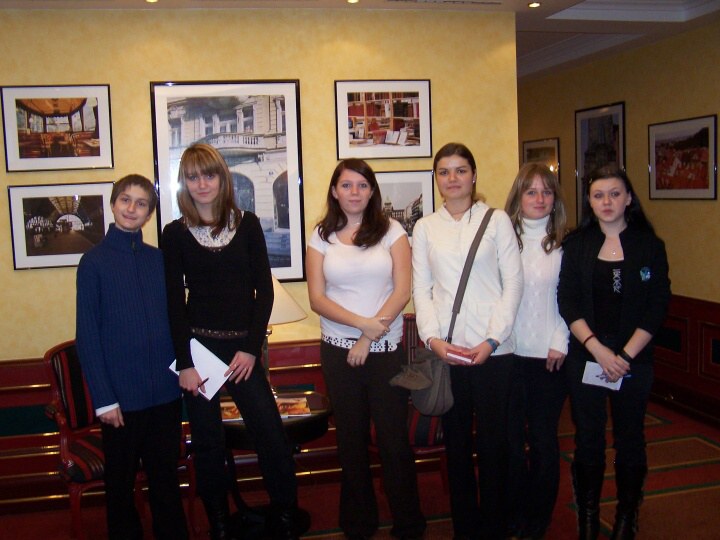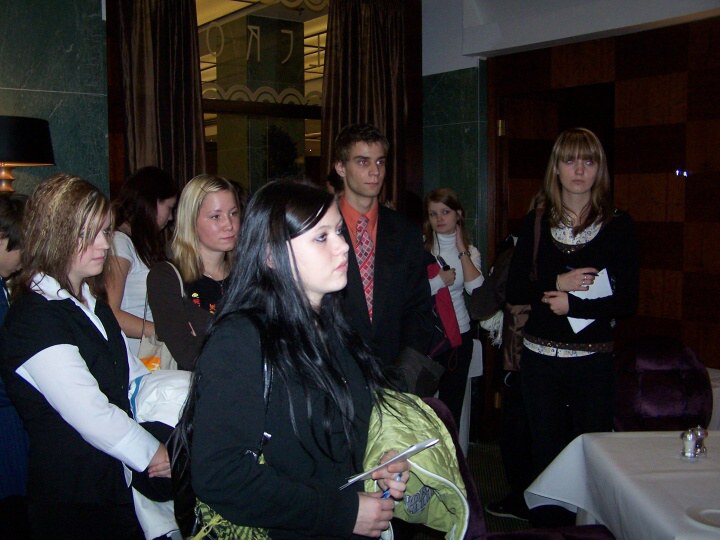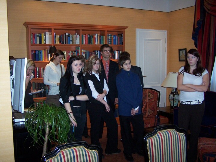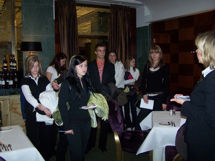 Po příjezdu do Prahy jsme se rozdělili do dvou skupin. První skupina šla do hotelu Palace. Tady se nám stal milým průvodcem pan Jaroslav Kroužel, který nám ukázal všechna zajímavá místa hotelu. Vstřícně odpovídal na naše dotazy. Dokonce při našem dotazu, zda postel není příliš krátká dovolil, abychom si lehli a vyzkoušeli její délku. Po skončení prohlídky nám všem poděkoval za milé chování, zvídavé dotazy a některým z nás nabídl možnost praxe v tomto hotelu.