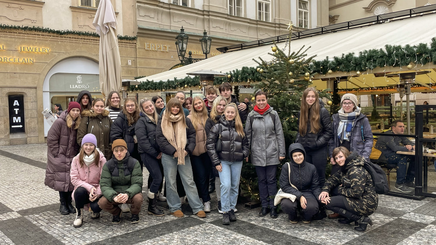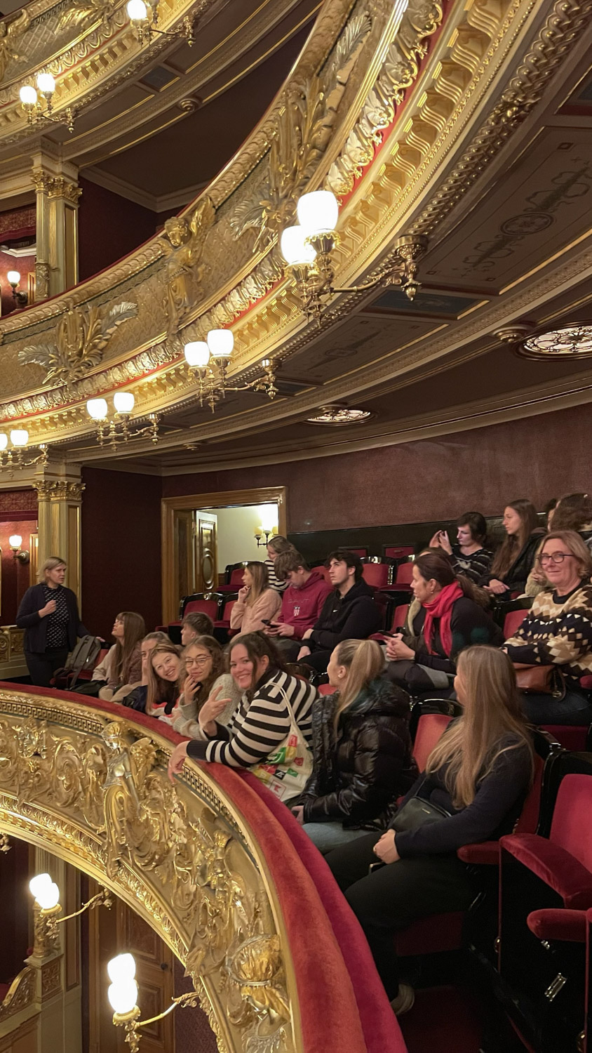 Na závěr na nás čekala komentovaná prohlídka Národního divadla. Umožnila nám projít divadlo od základních kamenů až po střechu. Podívali jsme se i na Novou scénu, kde sídlí slavná Laterna Magika. O kousek dál jsme šli nahlédnout do Drnu a celou naši exkurzi jsme zakončili u pomníku Sametové revoluce 17. listopadu.