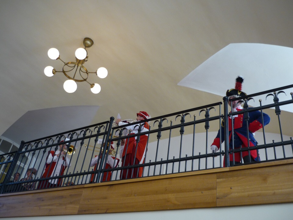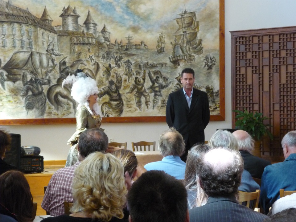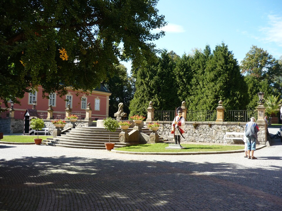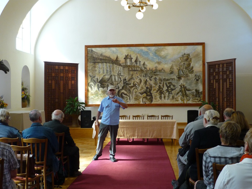První zastávka byla ve Vraném nad Vltavou, kde proběhl odborný seminář na téma „Pára“. Dozvěděli jsme se řadu zajímavostí o využití páry v dopravě a to nejen železniční, ale i vodní. Po malém občerstvení přímo v salónním voze historického vlaku jsme pokračovali do stanice Dobříš, kde na nás čekaly nablýskané historické automobily. Ty nás dopravily k zámku, kde byl pro nás připraven bohatý program, včetně jeho prohlídky, oběda v Zrcadlovém sále a zejména orientačního běhu o ceny pro studenty. Čtrnáct úkolů a otázek z historie i současnosti zámku, Dobříše a Vraného nad Vltavou nejlépe zvládlo družstvo z naší „hotelovky“.