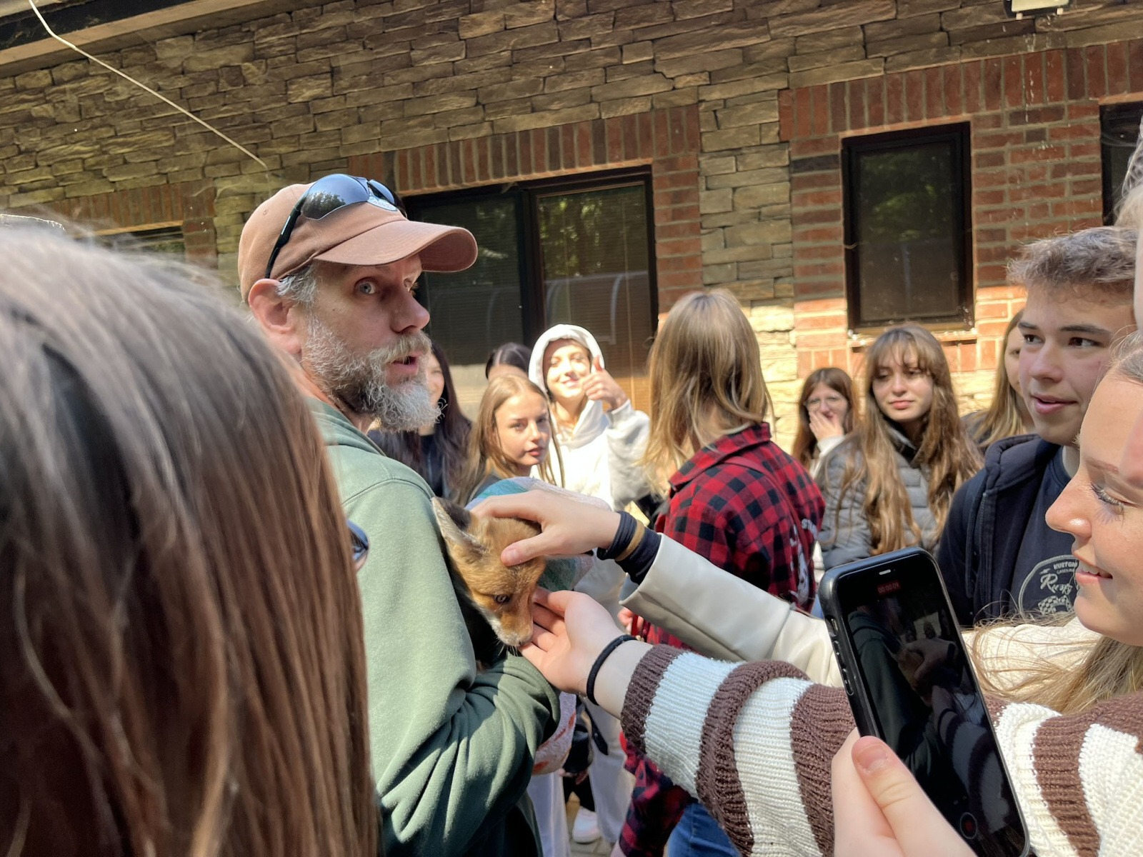 Po příchodu do centra nás přivítal pracovník Huslíku a udělal nám přednášku o fungování samotného centra a o péči poskytované zvířatům.