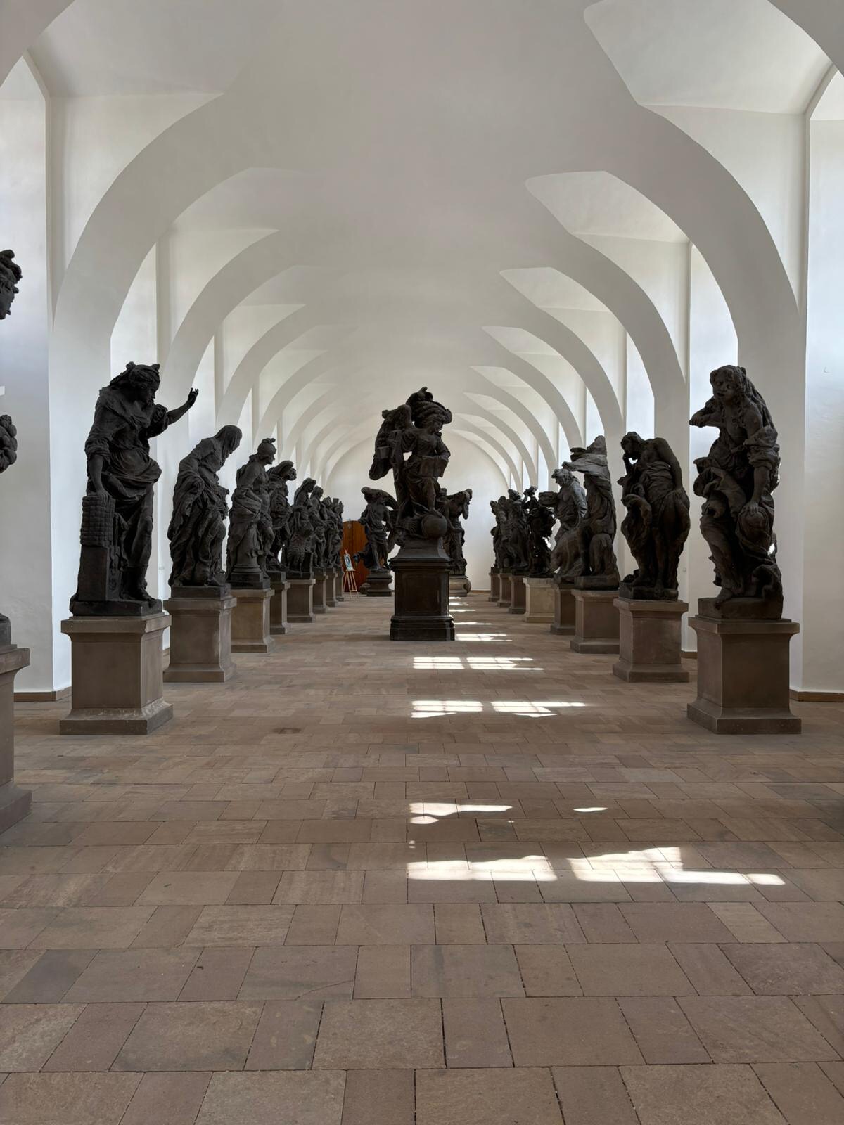 Nakonec jsme si prohlédli barokní sochy Ctností a Neřestí. Každá socha má svůj hluboký a symbolický význam a dohromady vytvářejí jedinečné umělecké dílo, které je unikátní v celé Evropě. Průvodce nám poutavě vyprávěl o významu jednotlivých soch a o autorovi těchto děl - sochaři Braunovi.