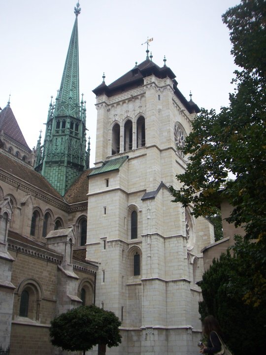 Pokračovali jsme směrem do historického jádra města.Prošli jsme kolem justičního paláce a obdivovali katedrálu St.Pierre. Ženeva se pyšní nejdelší lavičkou na světě, a ani tu jsme nenechali ujít. Je dlouhá 126 metrů a nachází se na Promenade de la Treille. Působivá byla i reformační zeď s nadživotními sochami vůdců kalvínské reformace. Dominantou města je v dáli se tyčící Mont-Blanc.Turisté ho při dobré viditelnosti pozorují ze stejnojmenného mostu. Nám se to nepodařilo, ale zklamaní jsme nebyli.Nejvyšší horu Evropy jsme měli jako na dlani den předtím.