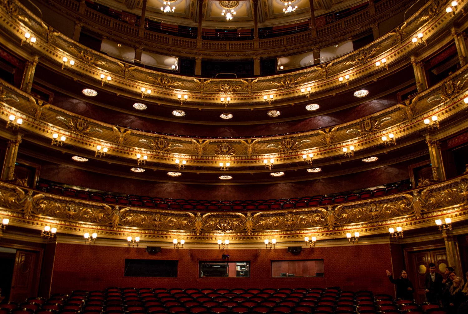 V divadle se nás ujali tamní průvodci. Přiblížili nám historii divadla, vzali nás do hlediště, odkud jsme měli možnost vidět přípravu scény na večerní představení, byli jsme se podívat na terase, ze které je krásný výhled na Prahu, a podívali jsme se i do sklepa, kde jsou uložené základní kameny divadla a model budovy v podobě před požárem roku 1881.