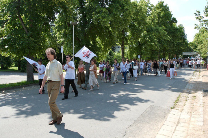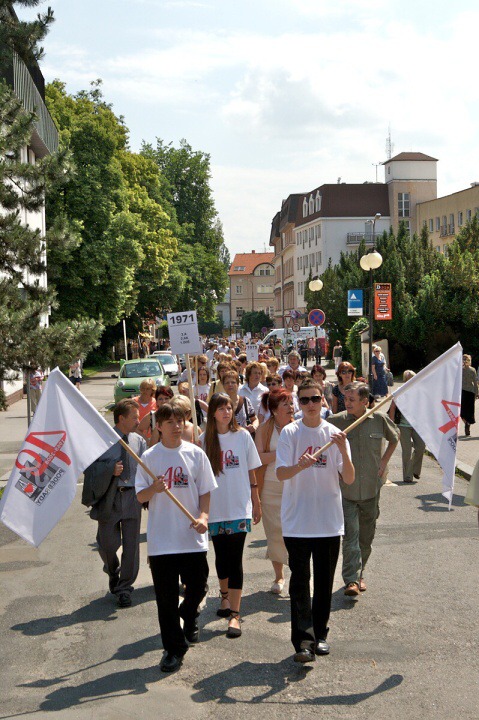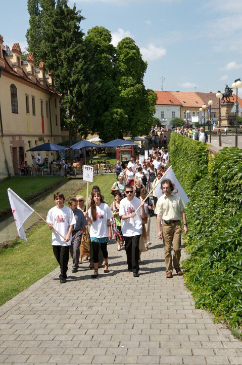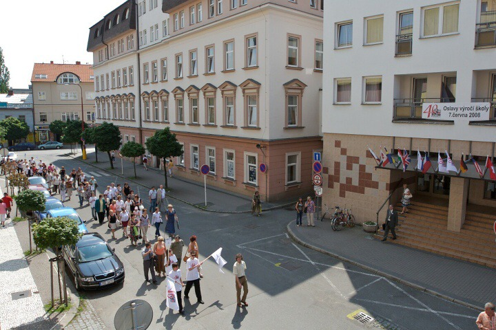 O jedenácté hodině vyjde ze zámecké brány krátký, ale úctyhodný slavnostní průvod nás hotelováků. Pokud jednotlivé třídy a ročníky připraví do tohoto průvodu nějaké oživení mávátky, šátky, pokřiky či vtipnými transparenty, bude to krásný příspěvek ku cti a slávě naší nezapomenutelné a skvělé školy! Ať město i jeho lázenští hosté vidí, jaká mimořádná škola má již čtyřicet let svoje sídlo v Poděbradech!