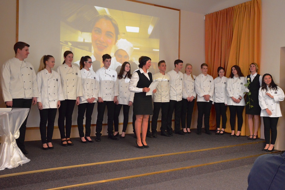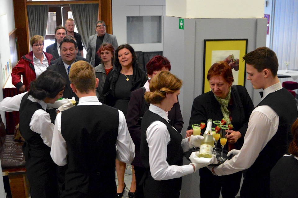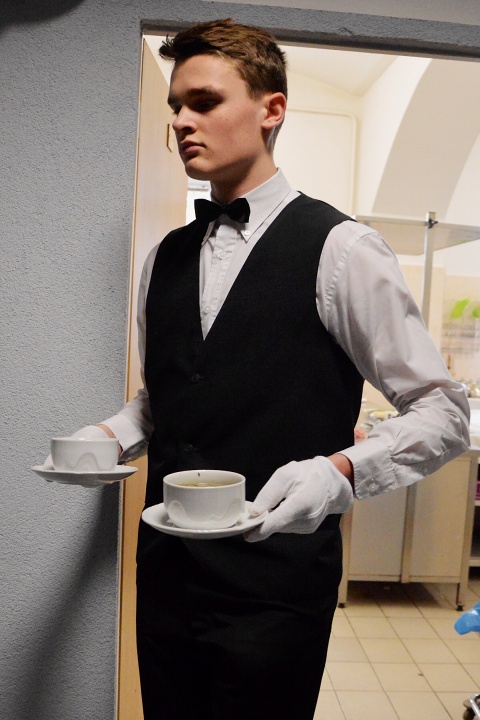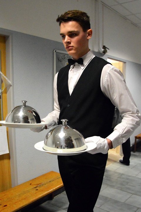 První den (v pátek) byli našimi hosty rodiče, třídní učitelka paní Ivana Širbičová a pan zástupce ředitelky Jan Kupr. Pozice vedoucí celého banketu se skvěle zhostila Dominika Šídová. V pátek skupinu obsluhujících vedl Jakub Litoš a přípravu slavnostního menu Jakub Vítek.