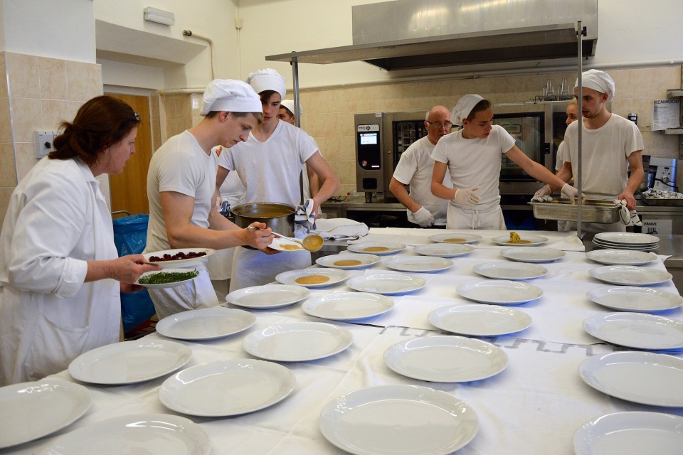 Druhý den (v sobotu) se naše práce obrátily a mě a moji skupinu čekalo vaření. Hostili jsme opět naše rodiče, paní učitelku Ivanu Širbičovou, pana zástupce Jana Kupra a k těmto hostům se ještě připojila paní učitelka Marcela Wagenknechtová a pan vychovatel Karel Novák. Blížila se 14 hodina a my pomalu dodělávali pokrmy. Vše se stihlo včas. Obsluha také vše hladce zvládla. Odešel poslední rodič a nás čekal úklid, který byl snad to nejhorší a nejtěžší na celém banketu, ale ani to nás nedostalo na kolena a společně jsme všechno dali do pořádku.