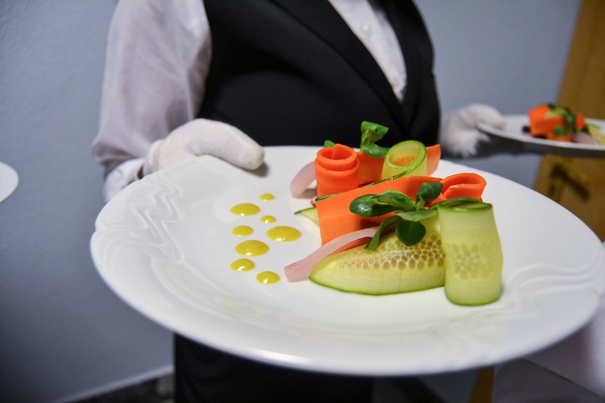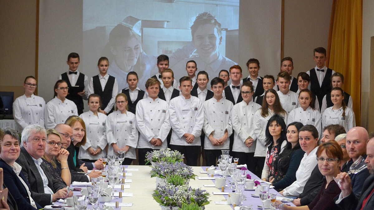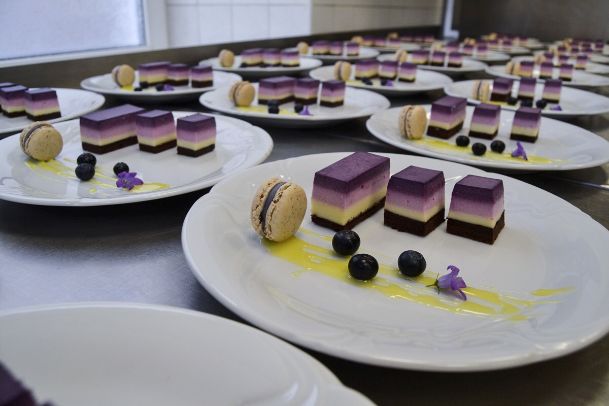 Po dlouhých měsících dohadů jsme dokázali sestavit celé menu. Servírovali jsme lososový tatarák, špenátovo-hráškový krém, vepřovou panenku v bylinkové krustě s gratinovanými brambory a chřestem, levandulovo-borůvkový dezert s makronkou a kávou. Toto menu jsme připravovali s paní učitelkou Roubíčkovou a Hummelovou, která také byla vedoucí banketu.