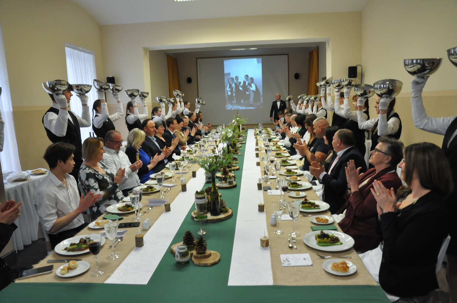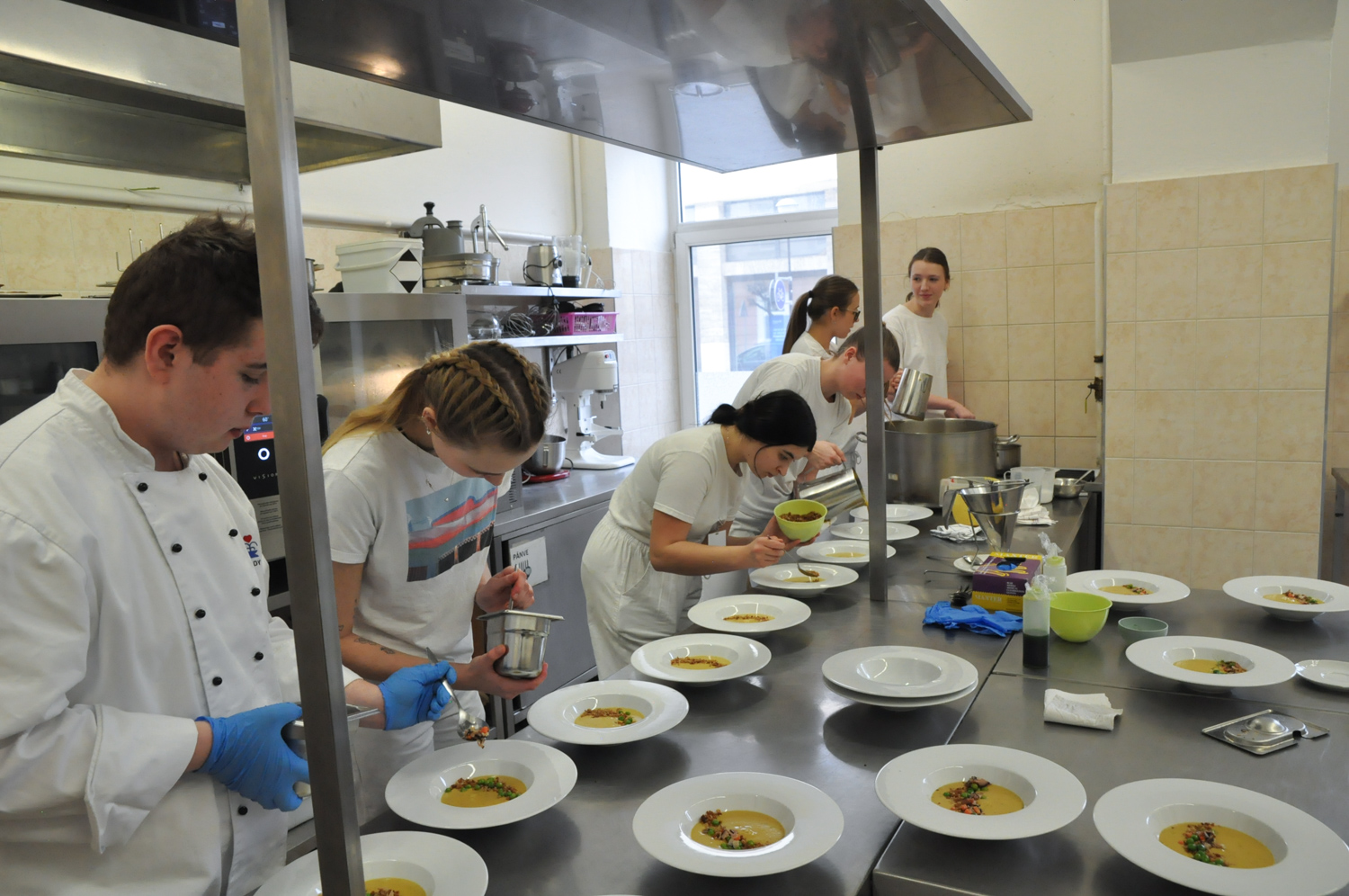 Pro první skupinu byl slavnostní banket zahájen ve středu 29. 3. Tato skupina obsluhovala své rodiče, zatímco druhá připravovala pokrmy v kuchyni. Ve čtvrtek 30. 3. se role vyměnily. Banket začal ve 14 hodin slavnostním aperitivem, po kterém se rodiče přesunuli do posluchárny školy. Poté přišel na řadu předkrm – marinovaná řepa, pěna z kozího sýra a wasabi, polévka – krém z loupaného hrachu Saint Germain, hlavní chod – kachní prso sous vide, houbové demi glace, bramborové suflé, špenátové pyré a nakonec následoval dezert – kokosové vejce, mango, passion fruit. Všechny pokrmy byly doplněny vhodnými nápoji.