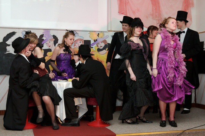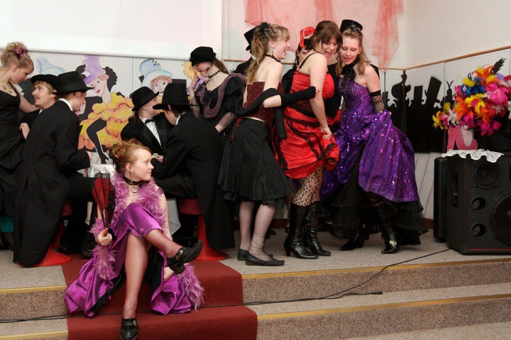 Raut třídy 2.D k příležitosti zakončení výuky odborných předmětů ve stylu Moulin Rouge.