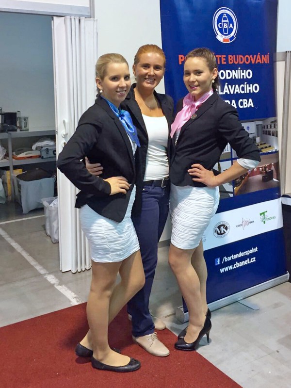 Na barmanské soutěži Gordon’s Junior Bartenders Cup porotcům umíchaly svůj drink Tereza Švarcová ze 4. A a Iveta Šimková z 3. C. Barmanky svědomitě trénovaly a s přehledem si na pódiu poradily. Na celou přípravu bylo pouze 5 minut a naše děvčata byla jedna z mála, kdo stihl časový limit. V receptuře bylo povinné použít Gondon’s gin a povolené produkty od společností Božkov a Coca-Cola. Tereza zvolila jako hlavní ingredienci do svého drinku okurku a Iveta zelený čaj. Oba drinky byly velice chutné a skvěle vypadaly.
