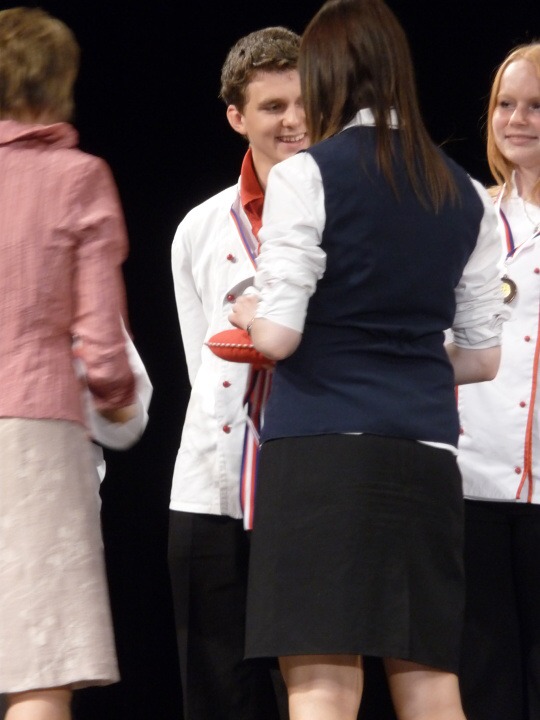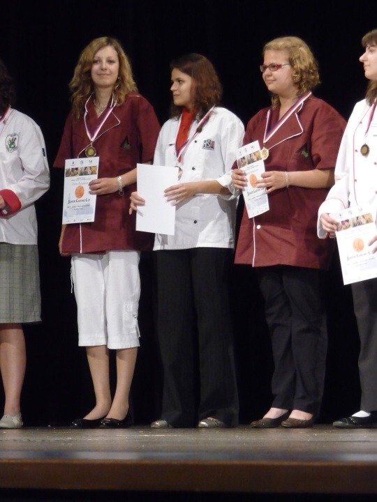 Naši školu pilně zastupovali i studenti v junior joggingu, což je běh číšníků s vínem. Této soutěže se od nás účastnili 2 týmy po třech. První tým se skládal z Jana Krčmaříka, Péti Kožíškové a Lukáše Rozkydala. Druhý tým tvořil Adam Glemba, Verča Vaisová a Zuzka Hoskovcová. Úkolem číšníků bylo v co nejkratším čase otevřít láhev vína, zdolat překážky s plným kelímkem a rozlít minimální množství vína.. I zde jsme uspěli a umístili se na třetím místě.