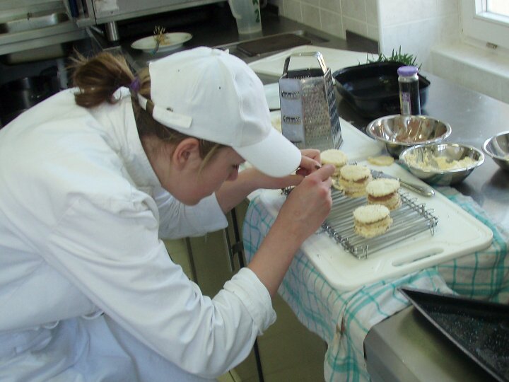 Ve středu po snídani se Jenda Hlušička připravoval na volnou disciplínu - flambování vepřové panenky před hostem. Během dopoledne jsme také shlédli několik soutěžících ve volné disciplíně z ostatních hotelových škol. Po výborném obědě nastala naše chvíle. S Katkou jsme se převlékly do kuchařského oblečení a připravily si veškeré suroviny do naší kuchyně. Odpolední soutěžení bylo zahájeno ve 13 hodin a pod dohledem odborných porotců byly pokrmy dohotoveny v 17 hodin. Naše menu tvořil těstovinový salát s tuňákem, mleté králičí maso s bramboráčky a křenovou omáčkou a citrónový klobouček s omáčkou z lesních plodů. Pokrmy byly vystaveny a ochutnala je nejen odborná porota, ale také přihlížející diváci.
