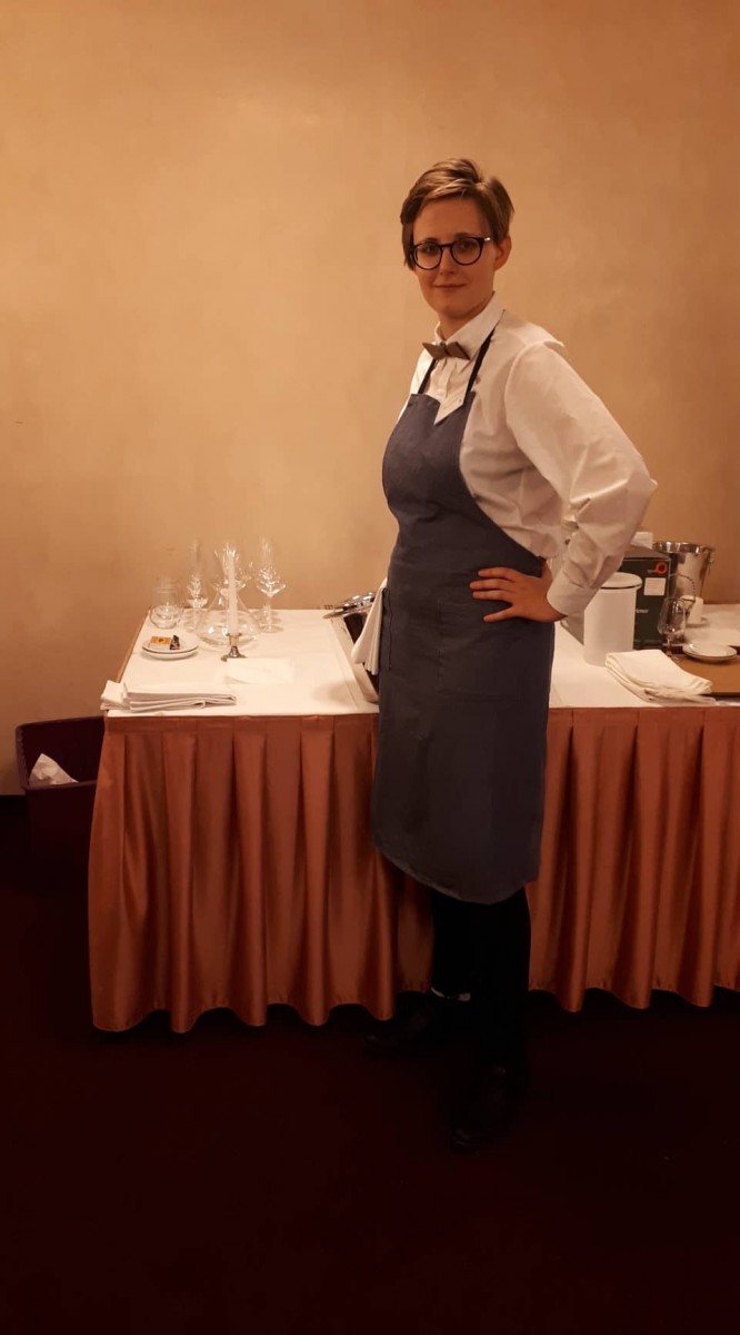 Anička si vylosovala taštičky s povidly přelité máslem a sypané ořechy, k nim zvolila polosladký Tramín červený z ročníku 2016. Její volba a servis vína se porotě zřejmě líbil, jelikož se Anička umístila na 3. místě z dvaceti soutěžících.