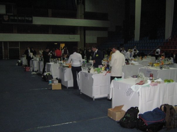 V 7:00 jsme vstávali, museli vše sbalit a přemístit se do Sportovní haly Prešov. Ondřej šel první, takže jsem mu s veškerou přípravou pomáhal. Bylo to dosti hektické, ale nakonec jsme vše dobře zvládli a Ondřej byl včas na svém pracovišti a vše bylo připraveno na 110%. Jeho samostatný barmanský výkon byl jako vždy dynamický, po barmanské stránce takřka bezchybný. Vše zvládl v časovém limitu. Nakonec si vysloužil od rozhodčího 4 trestné body a odcházel s úsměvem na tváři. Po jeho výkonu jsme se začali soustředit na moje vystoupení. Měl jsem vcelku dost času, takže moje příprava už nebyla tak hektická. Ondřej mi i tak samozřejmě pomáhal. Já jsem na své pracovisko vyrazil okolo půl druhé. Až na několik neshod s panem rozhodčím moje druhá mezinárodní soutěž začínala vcelku příjemně. Vlastní barmanský výkon se těžko hodnotí, ale myslím, že jsem ho zvládl, až na drobné chyby. Tyto drobné chyby mi zajistily 3 trestné body. Teď už jsme jen s Ondřejem doufali v to, že naše drinky zachutnaly chuťovým porotcům. Odbila pátá hodina odpolední a začalo vyhlašování soutěže. Já jsem se umístil na 49.místě, což bylo bronzové pásmo a Ondřej skončil na 32.místě a tím získal stříbrné pásmo z 86 účastníků. Jako škola jsme se umístili ve stříbrném pásmu a to na 17.místě ze 44 škol.