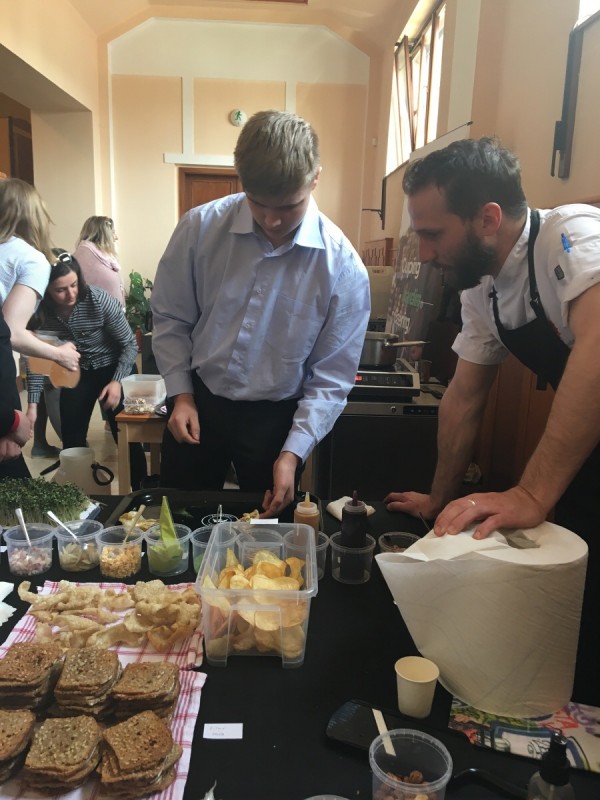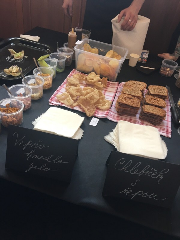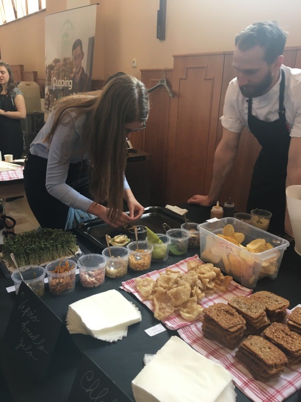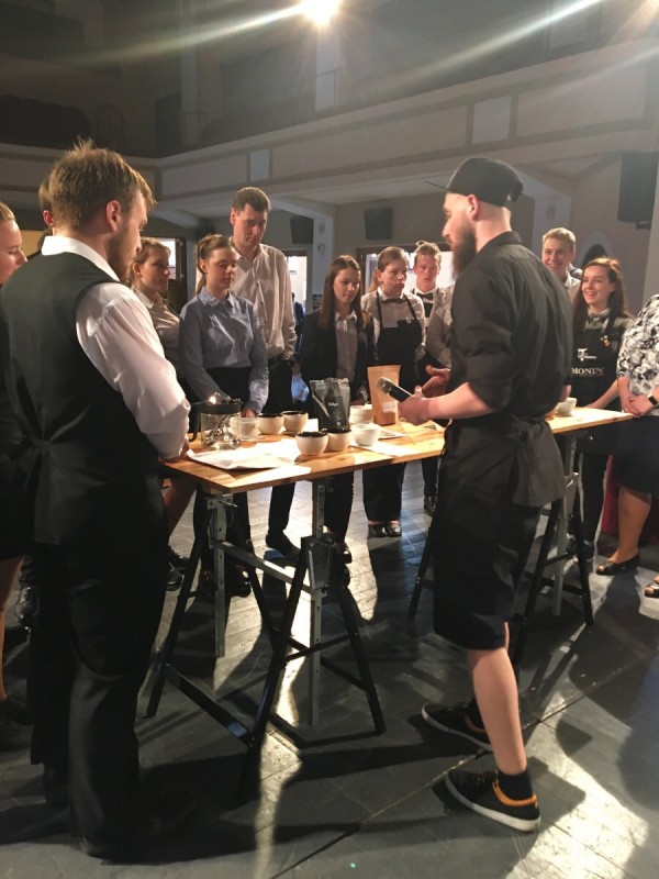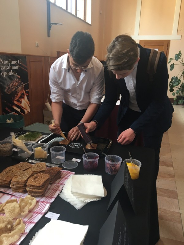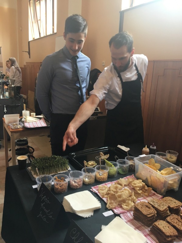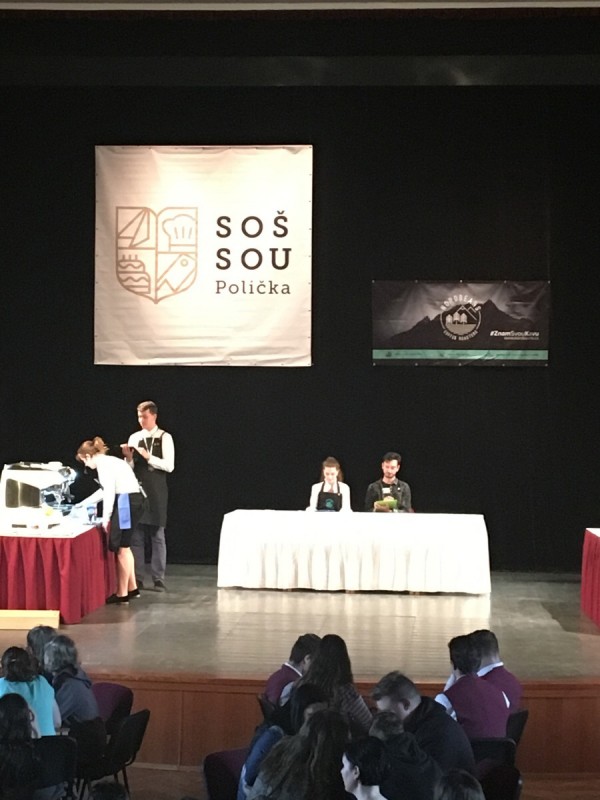 Jako diváci jsme měli možnost nejen sledovat a podporovat baristy juniory, ale mohli jsme ochutnávat bohatou baristickou a gastronomickou nabídku firem Nordbeans a Ambiente nebo vyzkoušet nápojovou, cukrářskou a carvingovou nabídku SOŠ a SOU Polička. Zde ve stáncích, v postranních částech sálu, jsme si mohli vyrobit chlebíček s řepou nebo mini zákusek ve stylu vepřo knedlo zelo. Vyzkoušeli jsme si také jak udělat latté art a mnohým z nás se i zadařilo.