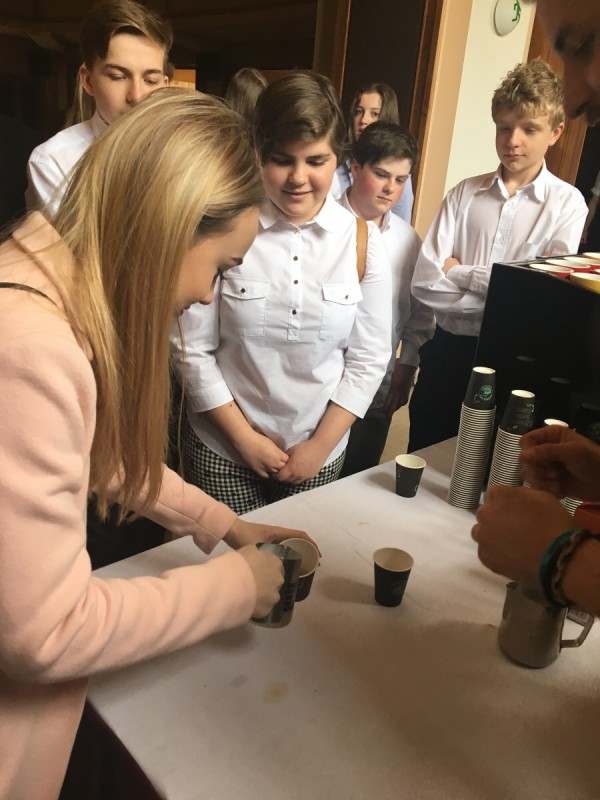 Jako poslední na programu byl cupping firmy Nordbeans, kde dobrovolníci mohli ochutnat mnoho druhů kvalitní kávy o různých chutích a většina třídy 1.D se s nadšením zúčastnila. Zjistili jsme, co je cupping a proč se dělá a obejvili jsme, jaké chutě se dají v kávě najít.