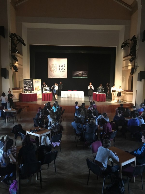 Dne 12.4.2018 se třídy 1.D a 1.B společně s paní učitelkou Marií Marešovou a panem učitelem Michalem Škvorem vyrazily podívat na soutěž Mladý barista na SOŠ a SOU Polička.
