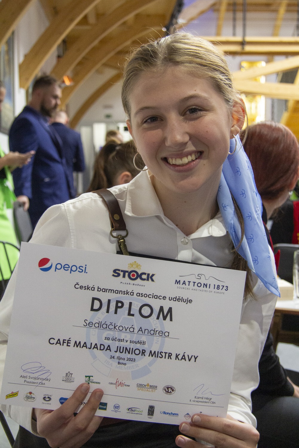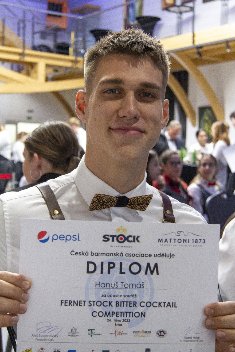 V pondělí 23. 10. 2023 jsme se vydali s našimi skvělými učiteli paní učitelkou Marešovou a panem učitelem Berbrem do Brna na soutež v baristice, barmanství, tea teastingu a pivu. Cesta utekla rychle a byla hodně veselá. Přijeli jsme do Brna, zaparkovali, a o půl hodiny později se ubytovali. Hned jsme tramvají vyrazili do centra Brna, kde nám paní učitelka Marešová ukázala jeho krásy. Např. jsme se vyfotili u známého nápisu BRNO. Poté jsme se navečeřeli ve výborné Asijské restauraci a jeli na pokoj se pořádně vyspat na druhý den.