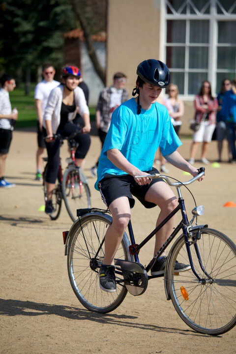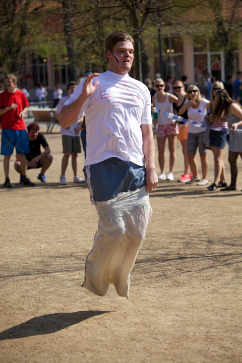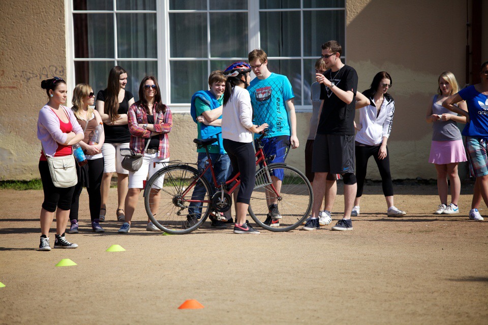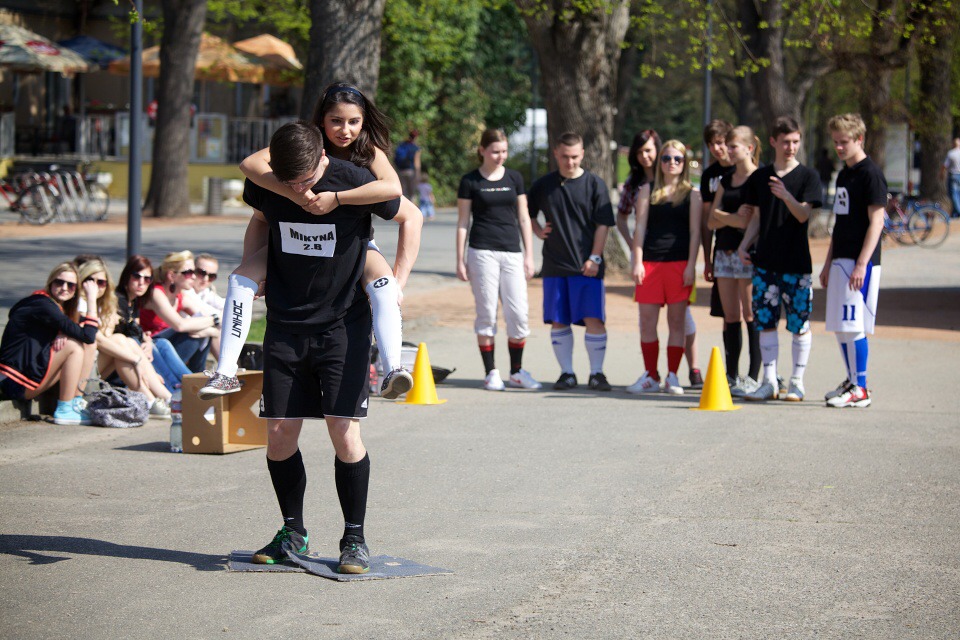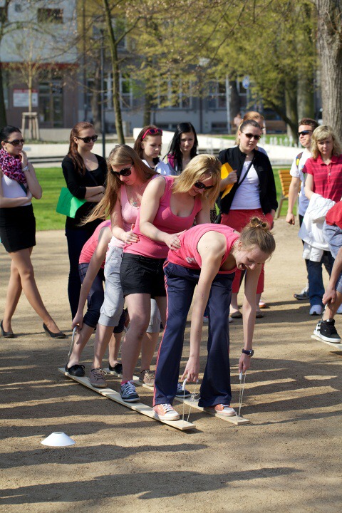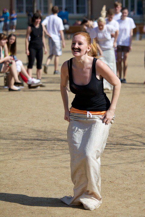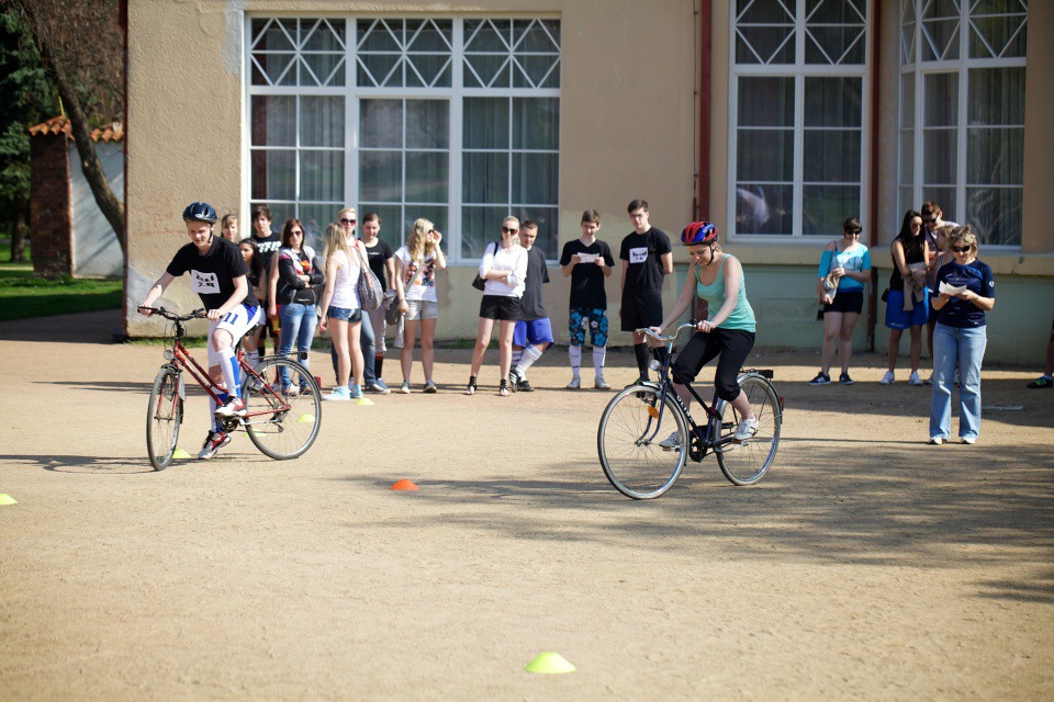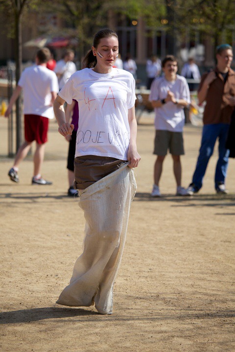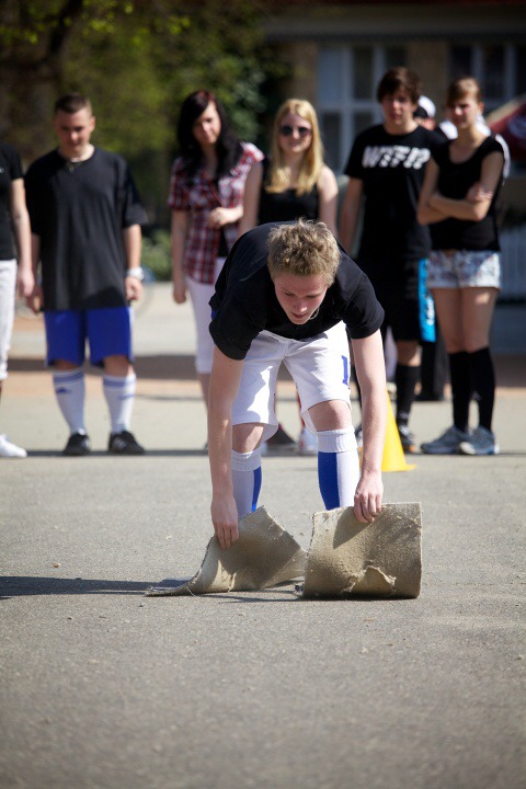 Mgr. Jan Kupr společně s dalšími tělocvikáři připravili sedm disciplín: běh manažerů, lyžování na písku, kobercový přesun, skok v pytli, hod míčkem, jízdu na kole aneb spěchej pomalu a nesměl chybět hod palačinkou.