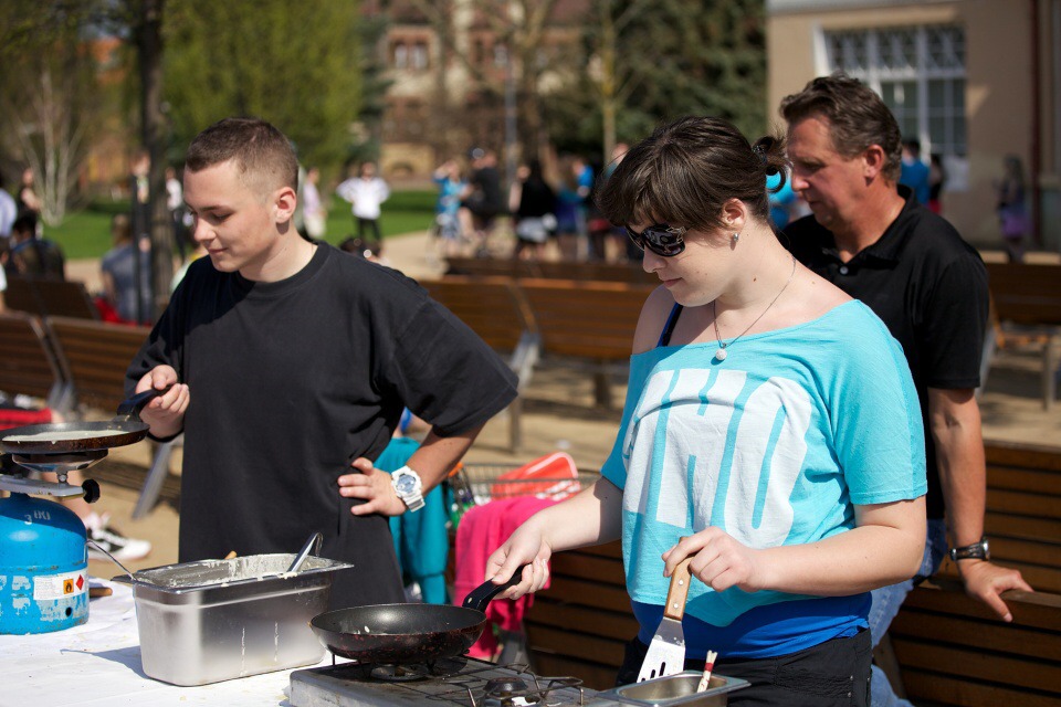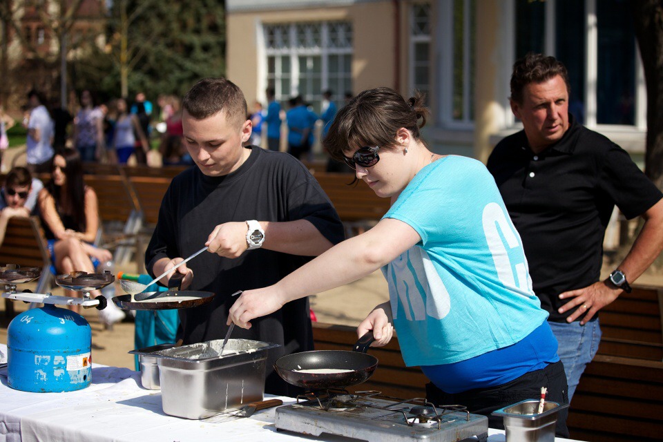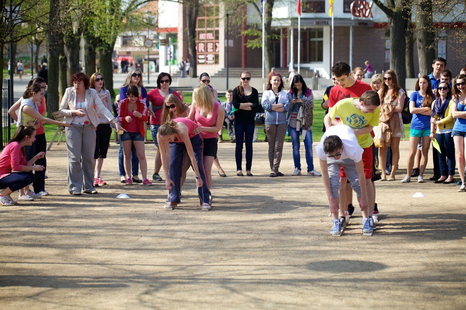 Na jednotlivých kolbištích probíhaly „líté boje“(vždy mezi dvěma družstvy), které doprovázelo hurónské povzbuzování. K fandění se přidávali i okolní kolemjdoucí. Obdivovali zaujetí a přáli „hotelovce“ mnoho elánu do dalších let. „Jsme rádi, že hotelová škola patří k Poděbradům a že nás zviditelňuje nejen v České republice, ale i ve světě,“ říká usměvavá paní s vnoučátkem.
