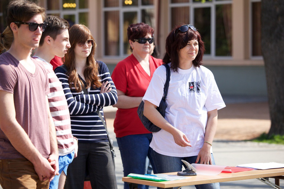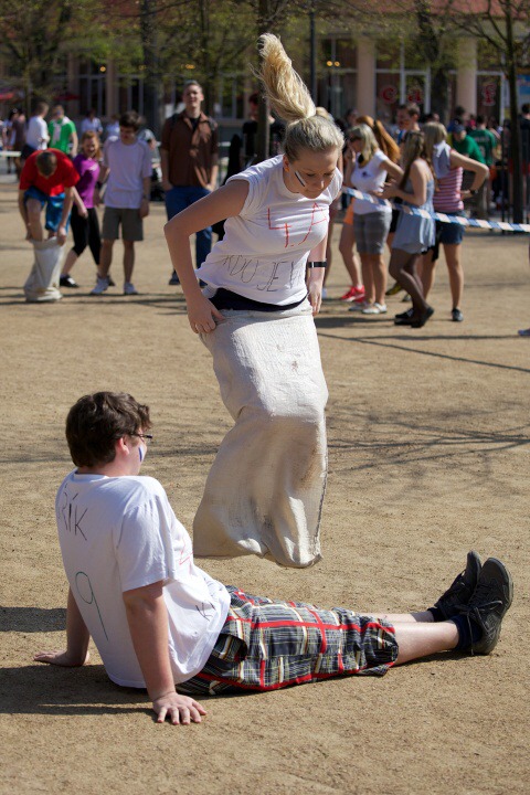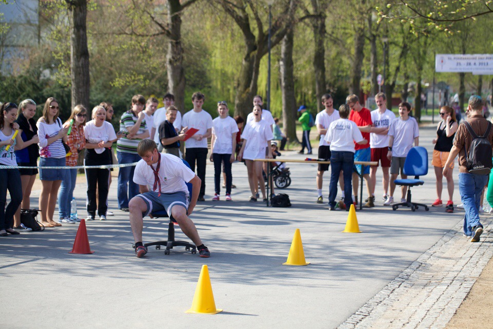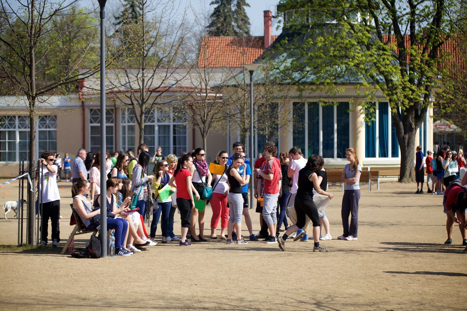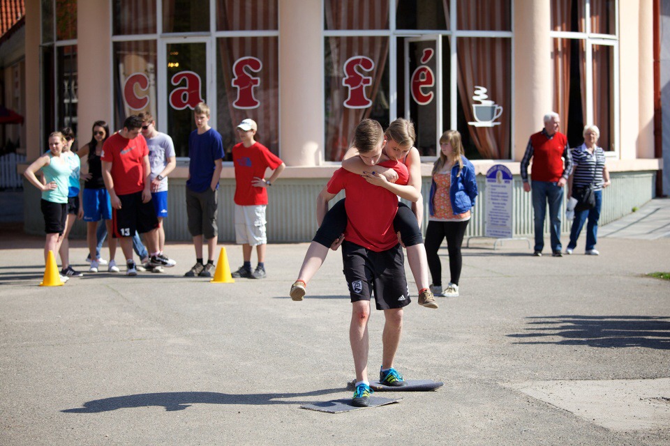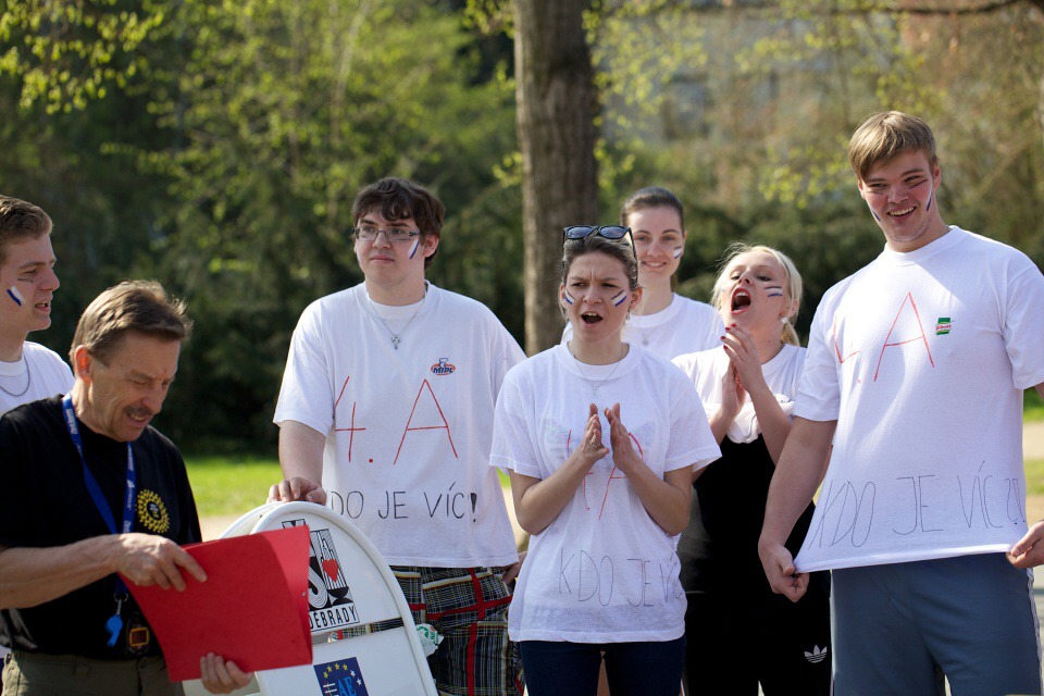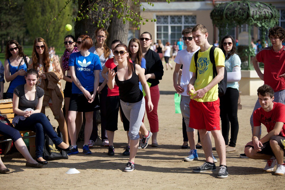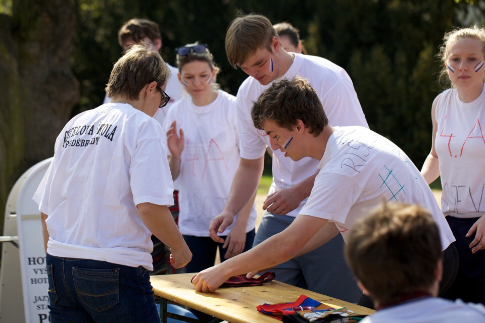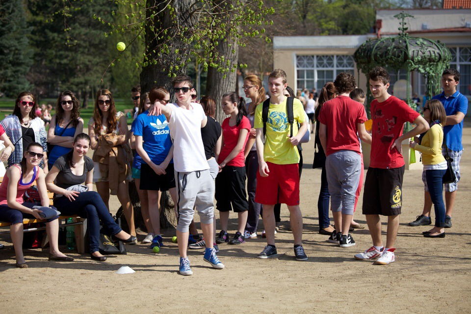 Ve čtvrtek 25. dubna jsme u příležitosti oslav 45. výročí založení naší školy uspořádali „Hotelovácký víceboj“. Protože se na nás již od rána smálo sluníčko, sešli jsme se na poděbradské kolonádě, kde byly připraveny jednotlivé soutěže a u nich netrpělivě postávali jejich garanti. Soutěžilo 13 studentských družstev (10 studentek a studentů z každé třídy), a protože 14. třída byla na praxi, zaskočilo za ni družstvo složené z vyučujících.