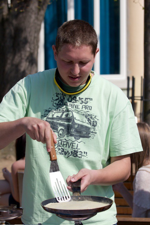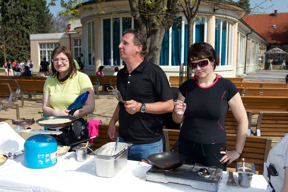 Mgr. Jan Kupr společně s dalšími tělocvikáři připravili sedm disciplín: běh manažerů, lyžování na písku, kobercový přesun, skok v pytli, hod míčkem, jízdu na kole aneb spěchej pomalu a nesměl chybět hod palačinkou.
