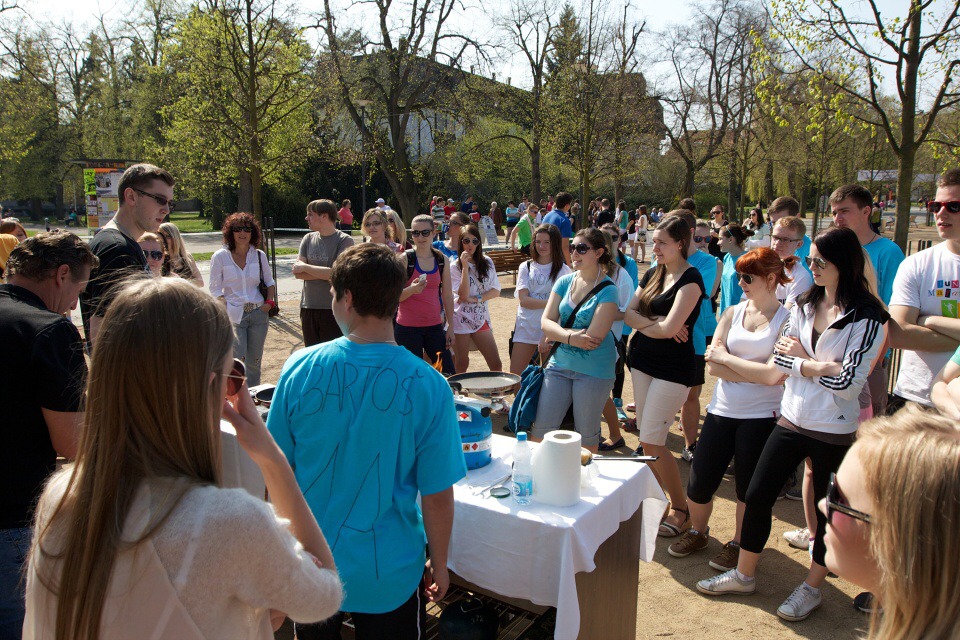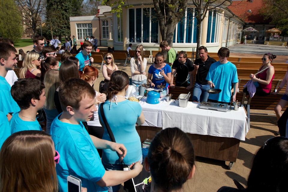 Ve čtvrtek 25. dubna jsme u příležitosti oslav 45. výročí založení naší školy uspořádali „Hotelovácký víceboj“. Protože se na nás již od rána smálo sluníčko, sešli jsme se na poděbradské kolonádě, kde byly připraveny jednotlivé soutěže a u nich netrpělivě postávali jejich garanti. Soutěžilo 13 studentských družstev (10 studentek a studentů z každé třídy), a protože 14. třída byla na praxi, zaskočilo za ni družstvo složené z vyučujících.