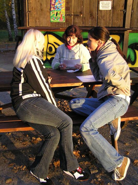 V doprovodu paní Šimákové a Dohnalové se přesouváme k Jezeru, kde přibližně v 16.00 celý závod začíná. Rozdělujeme se do čtyř, tří a dvoučlenných skupinek, na mnohých z nás je patrná nervozita, protože nevíme, jaké úkoly nás čekají ani kudy trasa povede, jedinou útěchou se pro nás stává informace, že celý závod končí u internátu střední zemědělské školy, která je organizátorem celé této akce.